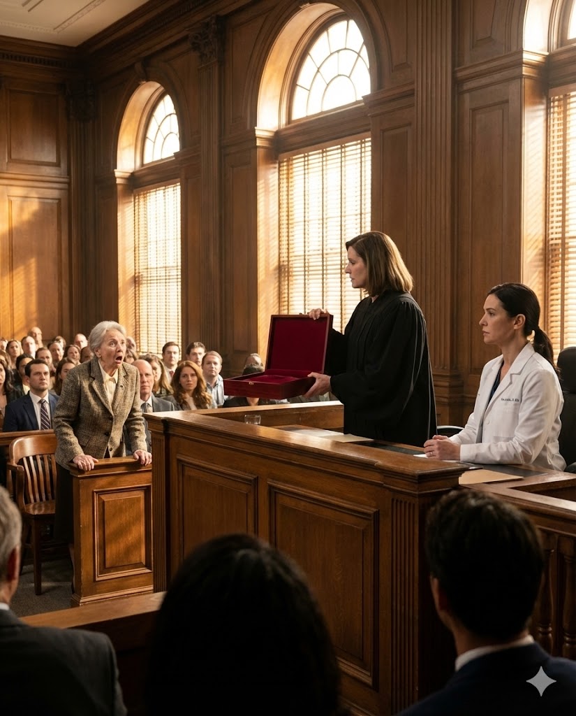 Judge Sterling didn’t hesitate. She reached under her bench. She pulled out a small, sealed plastic box—evidence from a malpractice case heard earlier that morning. It contained a pristine, surgical-grade scalpel.