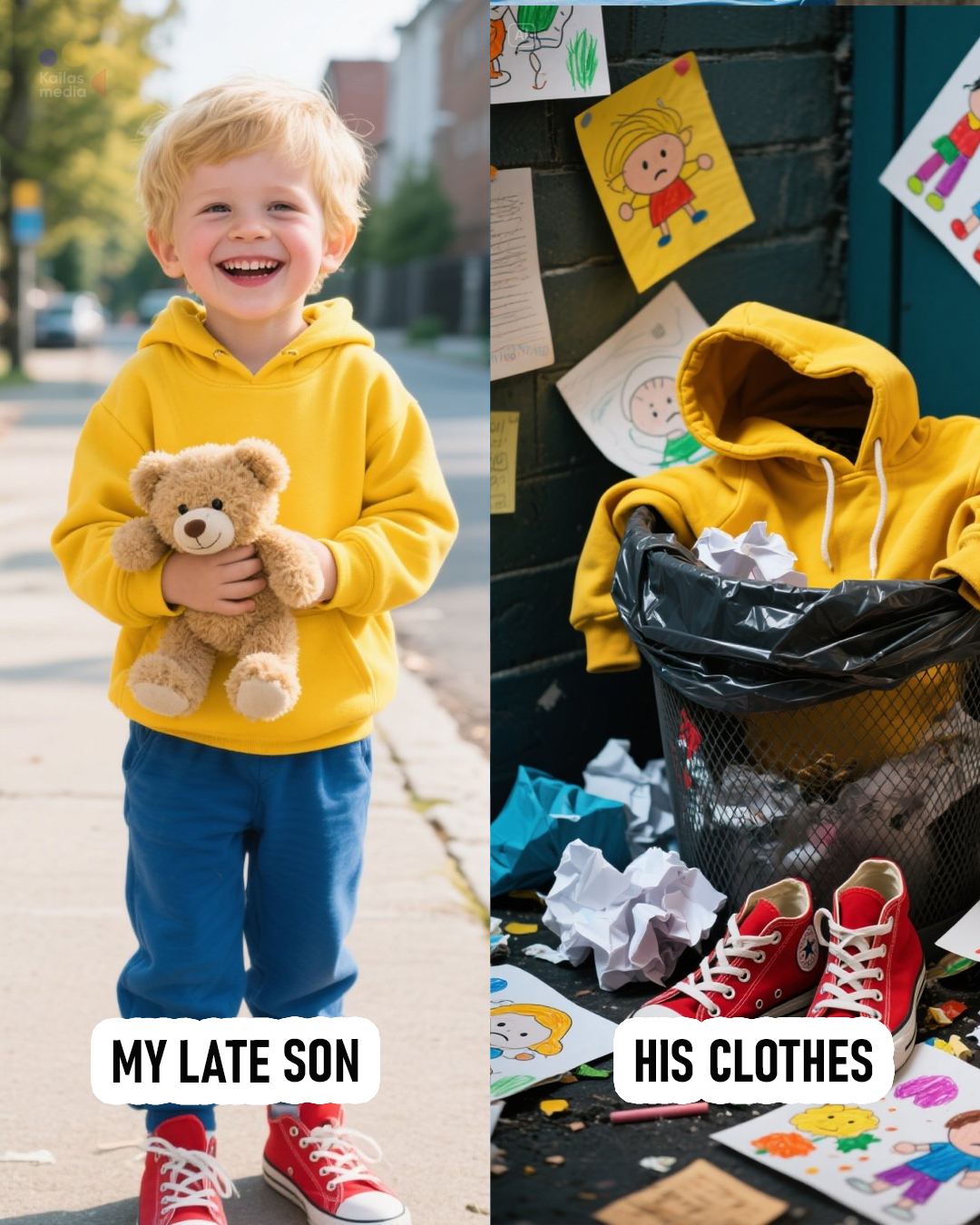 My hands shook as I ripped it open. Inside were Caleb’s dinosaur hoodie stained with coffee grounds, his tiny sneakers tangled in used tissues, and his superhero drawings crushed into trash.