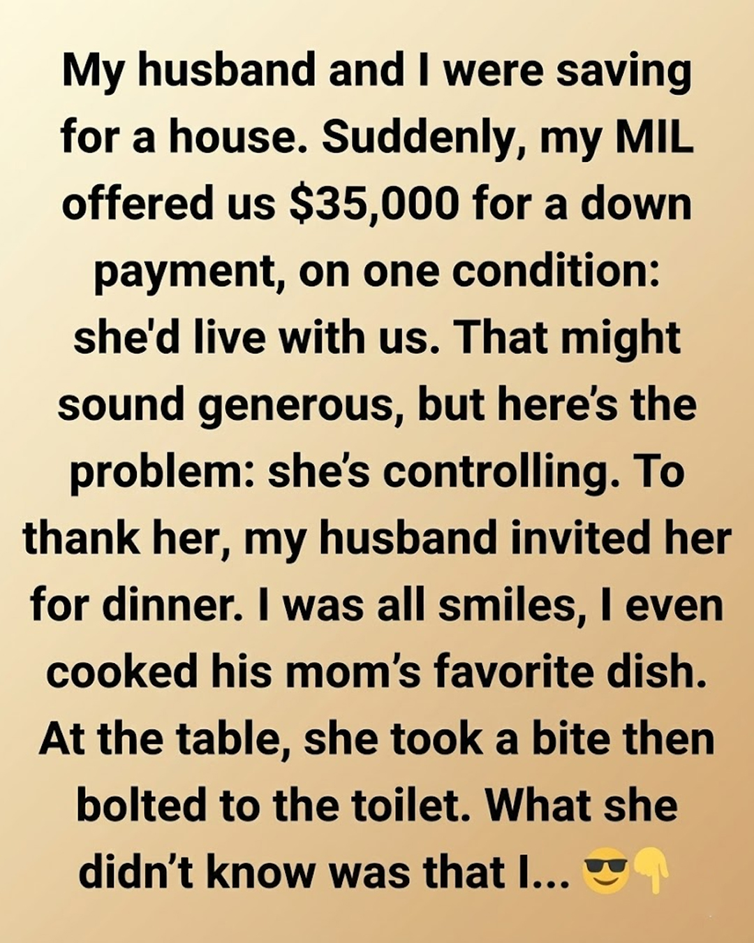 My husband and I had been saving every penny we could for a down payment on a house. Then, out of nowhere, my mother-in-law offered us $35,000—on one condition: she wanted to move in with us.