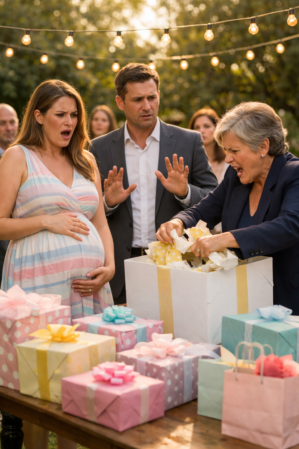 After the chaos on the lawn, the celebration dissolved into strained whispers and quick departures. Guests clutched designer purses and half-eaten cupcakes as they hurried off like the place was ablaze. I couldn’t blame them. Watching a mother-in-law accuse her visibly pregnant daughter-in-law of cheating wasn’t exactly the charming Sunday affair they’d expected.