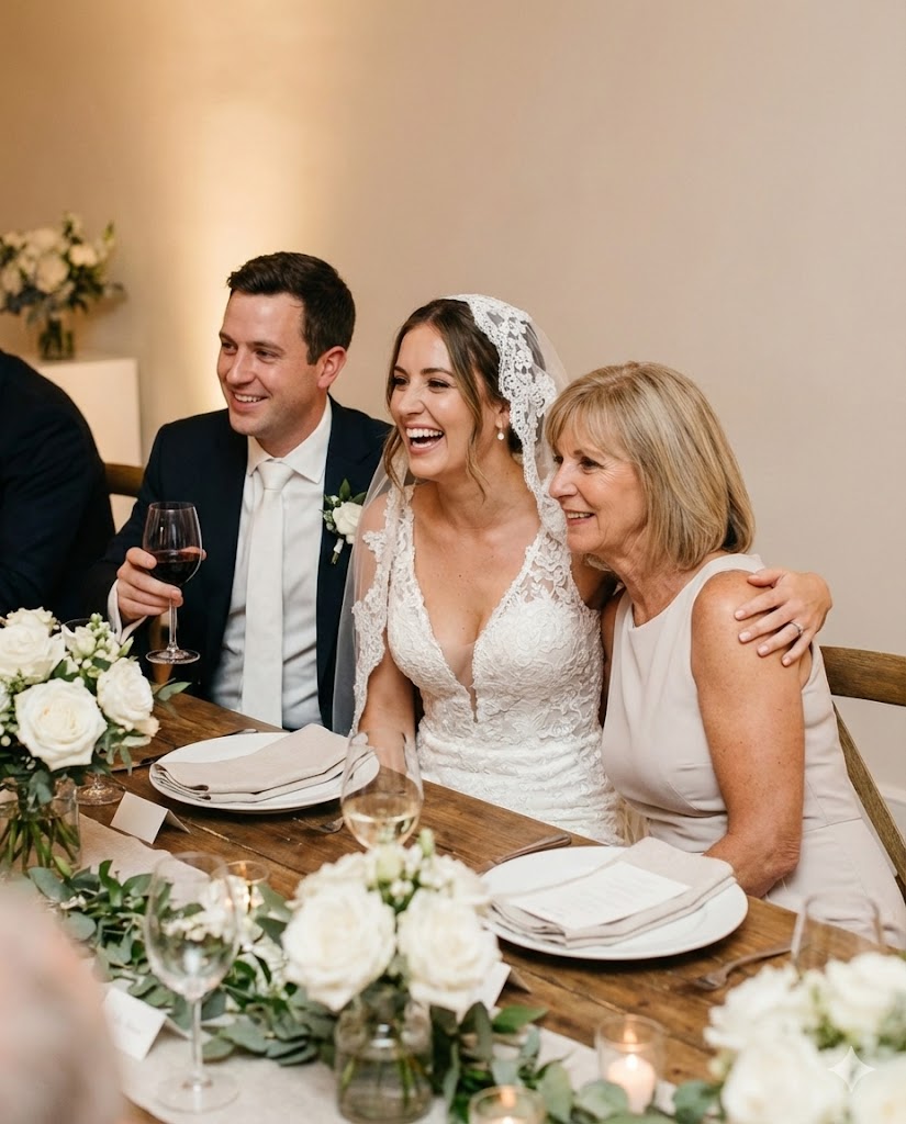 “Relax, sweetheart,” she said, unfolding a napkin onto her lap. “I just want to make sure you’re eating properly. Weddings are exhausting.”