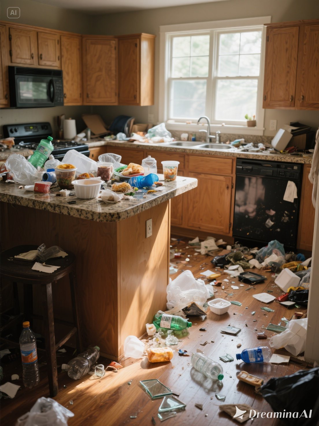 When I stepped inside, I was stunned. Empty bottles scattered everywhere, floors sticky, food rotting in the kitchen, cigarette ash ground into the carpet.