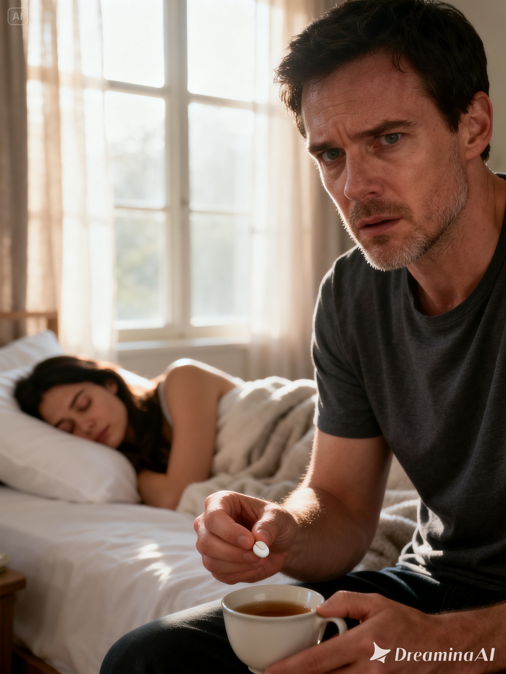 A soft clink came from the cup he had left on the bedside table, as if he were checking whether the tea had been touched.