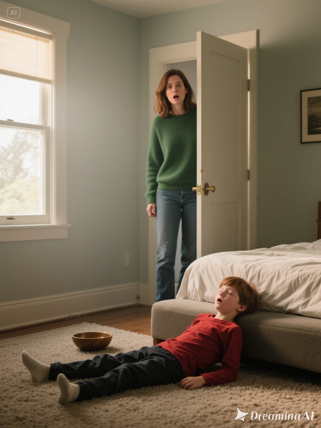 The door was latched from the outside. When I opened it, the smell of urine and dust hit me. Noah sat curled in the corner, clutching a stuffed dinosaur, his cheeks sunken and eyes glassy.