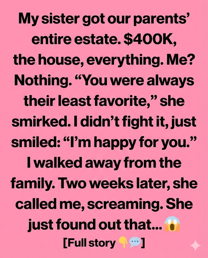 But when I did, her voice came through sharp and shaking, nothing like the smug tone she’d used in the lawyer’s office.