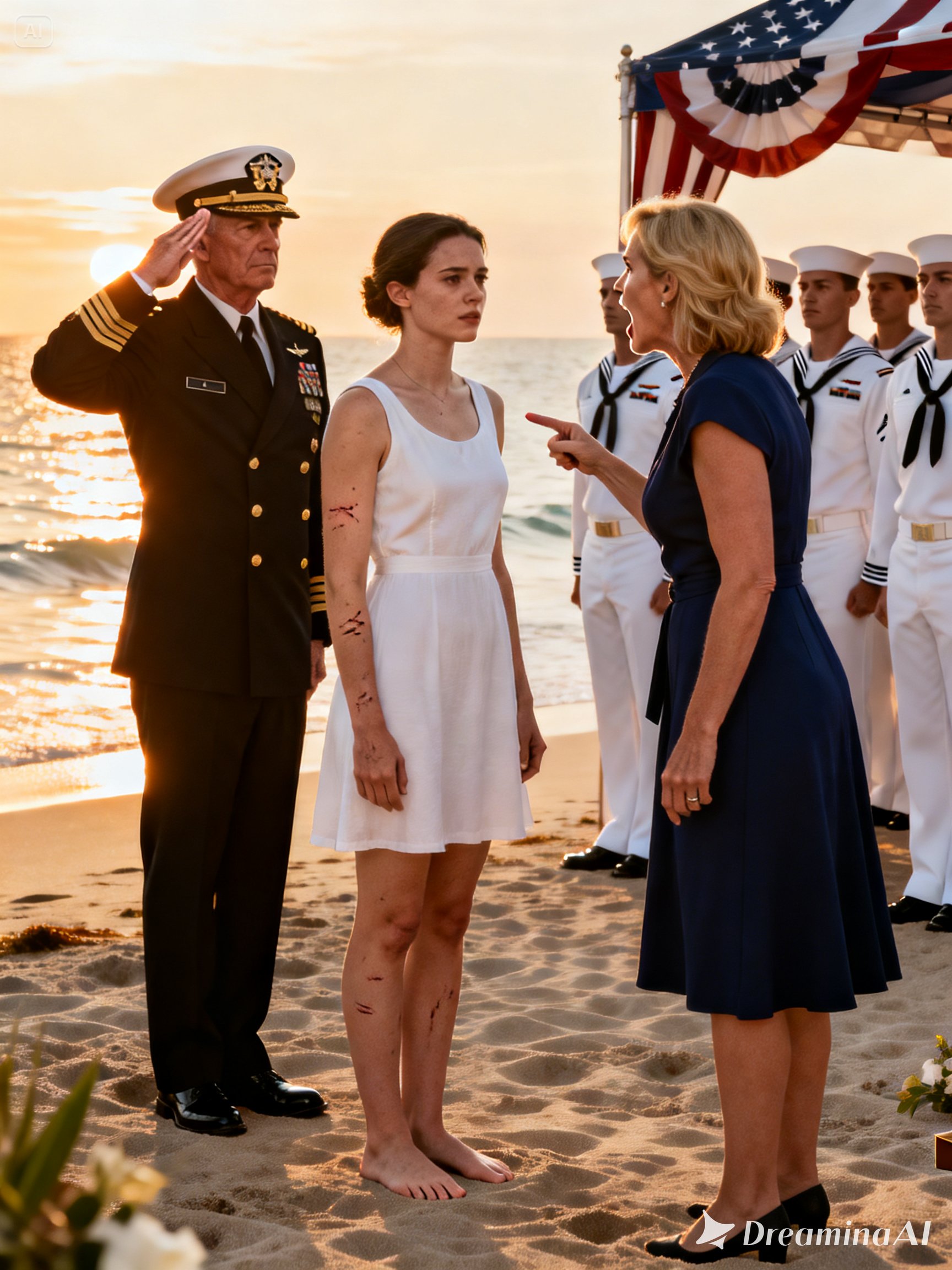 An older man stood near the dunes, a little apart from the crowd, wearing a Navy blazer despite the heat. He wasn’t watching Jessica. His focus was fixed just above my left shoulder where my shirt had slipped—at a small faded tattoo most people assumed meant nothing.
