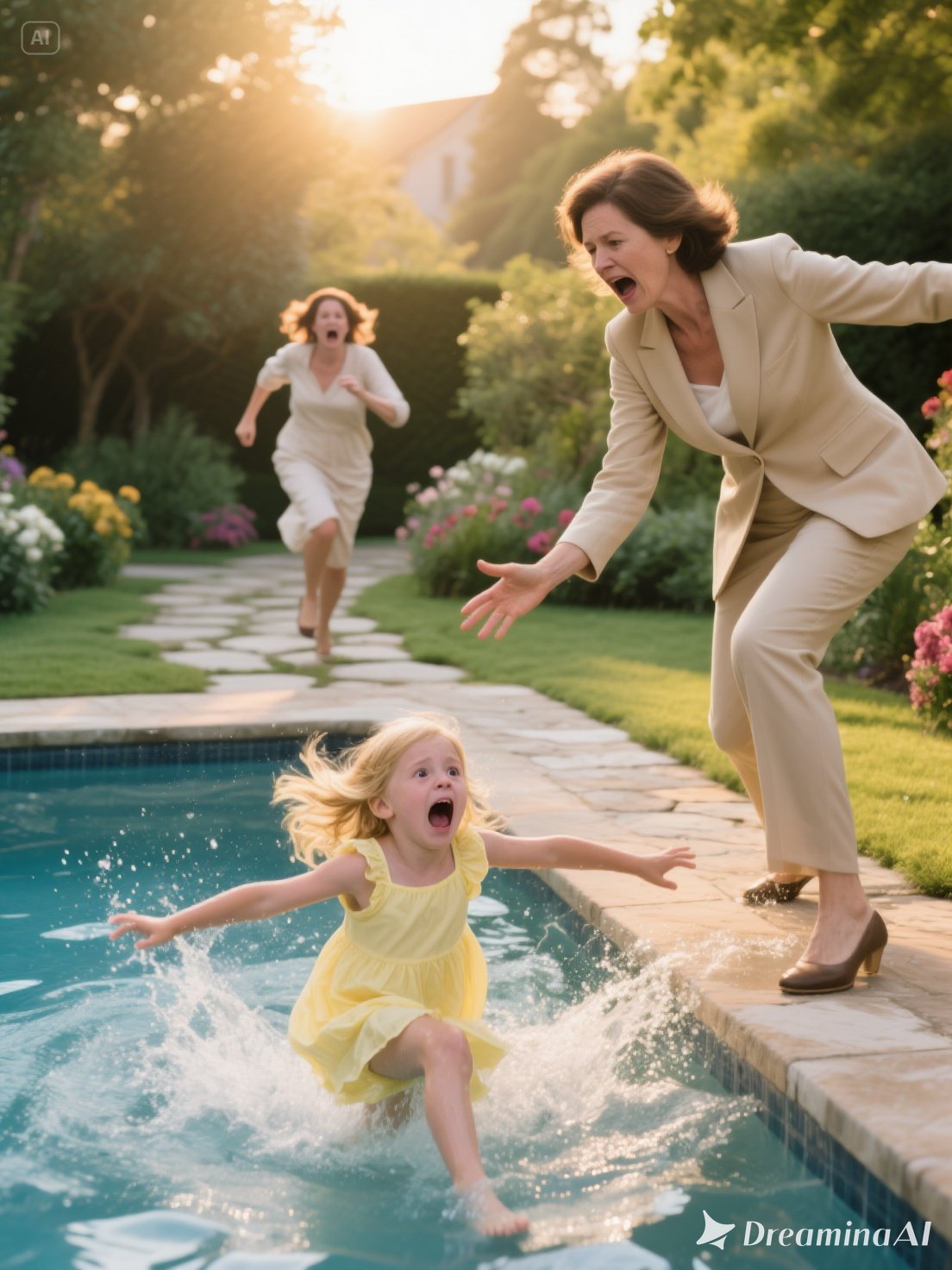 My sister shoved my daughter into the pool—still wearing her Sunday dress, incapable of swimming. I lunged forward instinctively, but my father seized me by the neck and forced me down. “If she can’t handle the water, she doesn’t deserve to live,” he growled. In that instant, my heart felt like it was being ripped apart. After dragging my gasping, water-choked child from the pool, I didn’t scream. I didn’t cry. I simply looked at them one last time—long, cold, and silent. Then I walked out of that house forever. They had no idea that I was taking everything they valued most with me… and by the next morning, they finally understood.