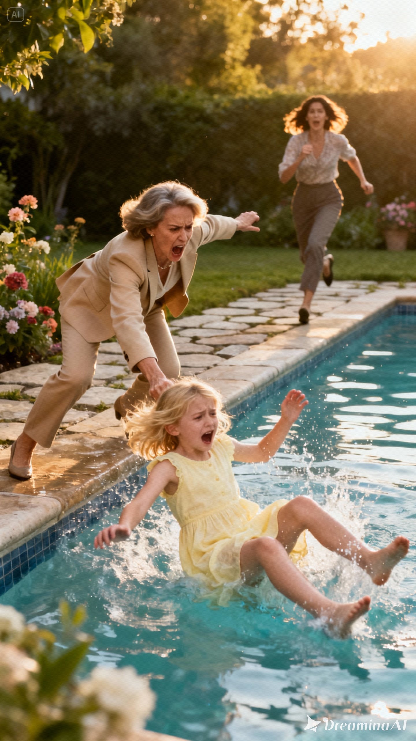 My heart pounded so violently I could hear it in my ears. I clawed at the ground, at his wrist, but he held firm. Behind him, splashing grew desperate—tiny arms flailing, struggling. Something inside me snapped silently, shredding the threads of trust I had once held for that family. With a surge fueled purely by terror, I tore myself free and lunged toward the pool. Olivia’s head barely broke the surface, her breaths ragged and shallow. I plunged in, the icy water shocking through me, and grabbed her under the arms, hauling her out. She coughed and trembled, clutching me as if I were a lifeline.