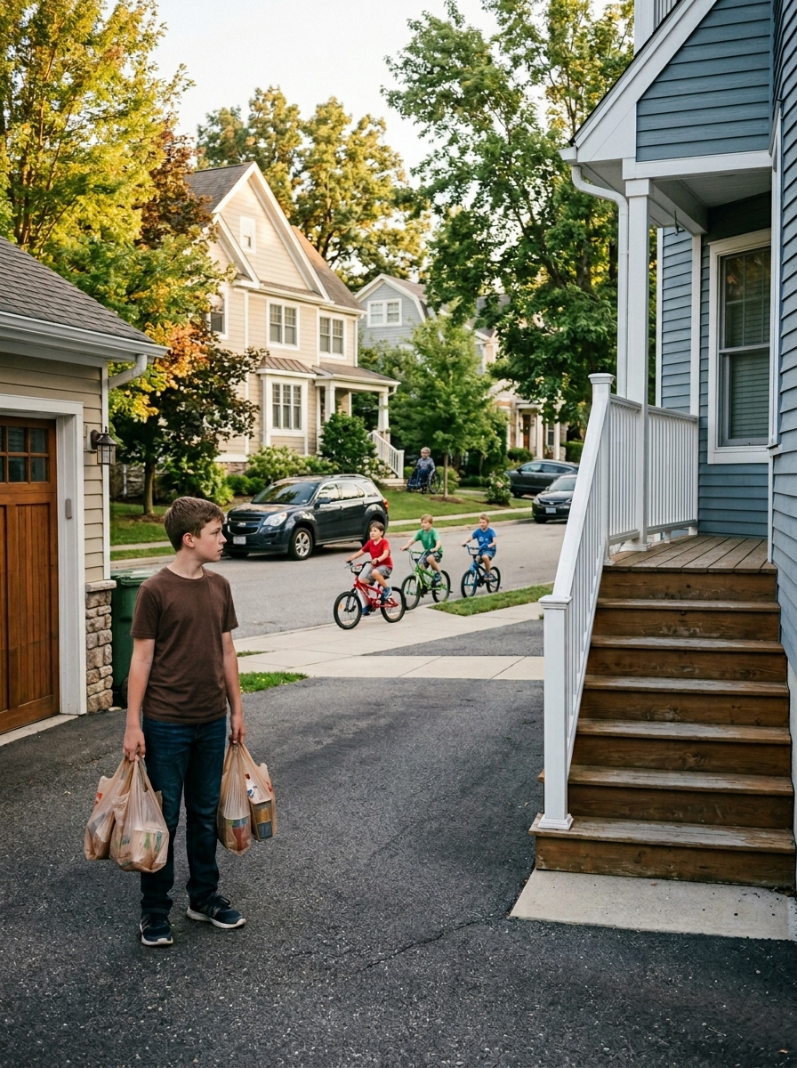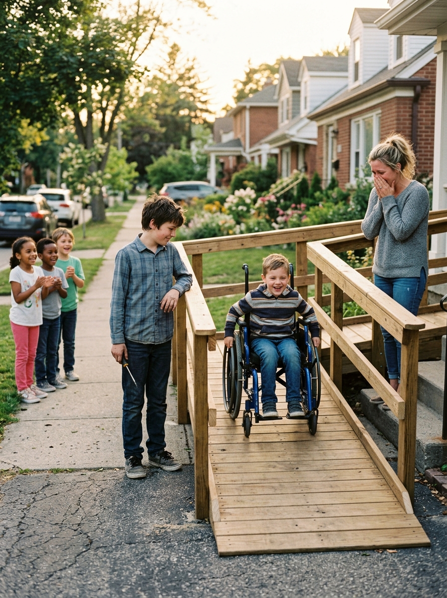 Our neighbor’s son, Caleb, is nine. He is quiet, observant, and always sitting on the front porch in his wheelchair. He watches the street as if it were a play he cannot join.