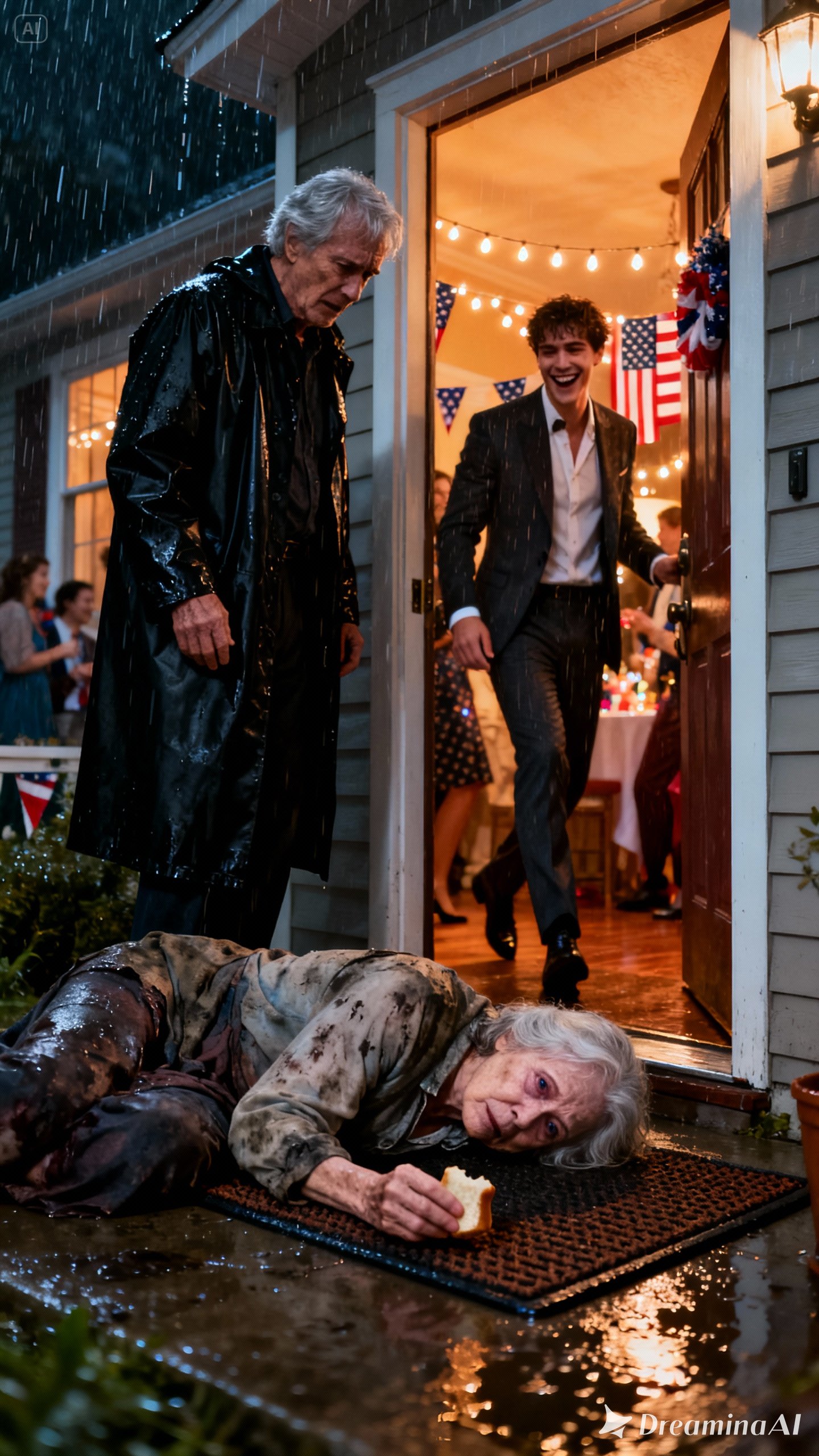 His mouth opened, but no sound came out. The guests stopped laughing. The music from inside faded into the background.