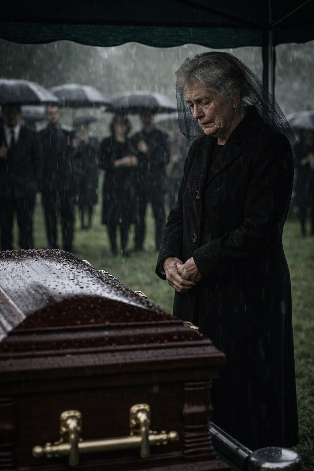 Victoria hung on his arm, wearing a dress far too festive for a funeral day.