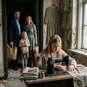 When the cake finally came out, golden and imperfect, Lily cut herself a small slice. She took one bite—and then another—and then her face crumpled. The sob came out of her like it had been waiting years for permission.