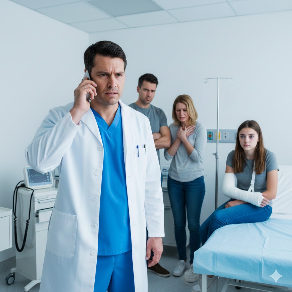 He examined my arm carefully, then paused. His gaze shifted from me to my mum, then to Stefan, and something in his expression changed—not dramatically, just decisively.