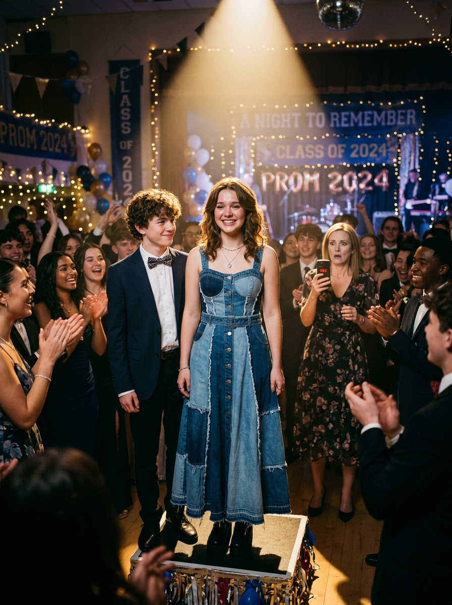 My stepmom laughed at the prom dress my little brother made for me out of our late mom’s jeans. By the end of the night, everyone knew exactly who she was.