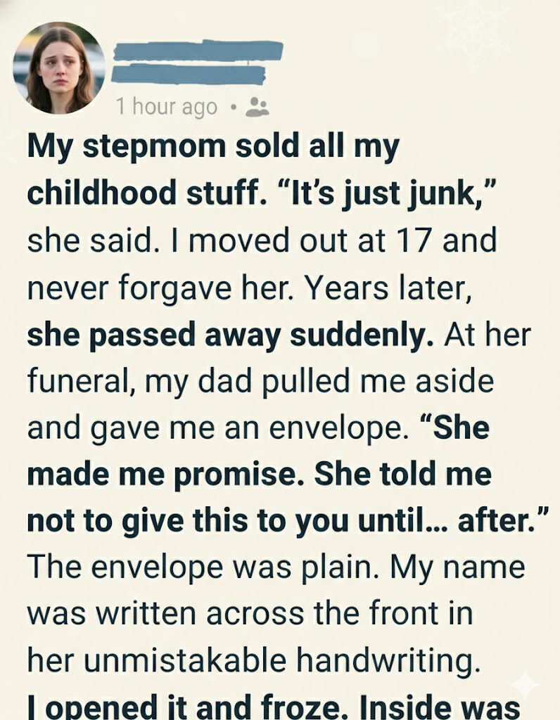 She finally turned, arms folded, her face calm in that way that always made me feel insignificant. “It was just junk. You’re too old to be hanging onto that nonsense.”