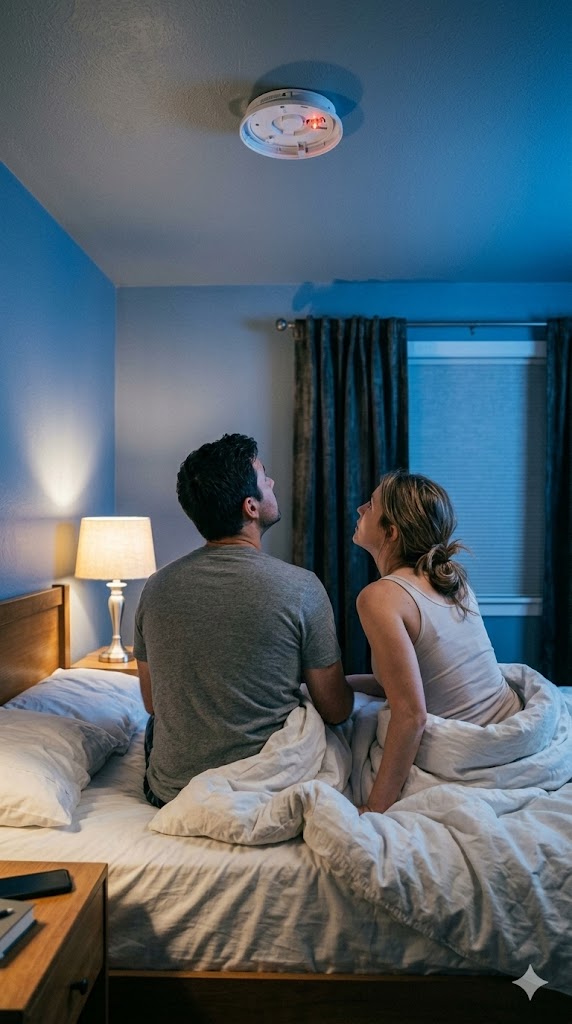 We were already lying in bed, the lights turned off, listening to the soft, unfamiliar sounds of the house settling around us. She shifted slightly beside me—and then suddenly went rigid.