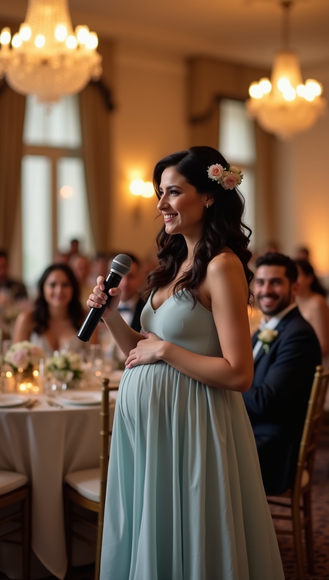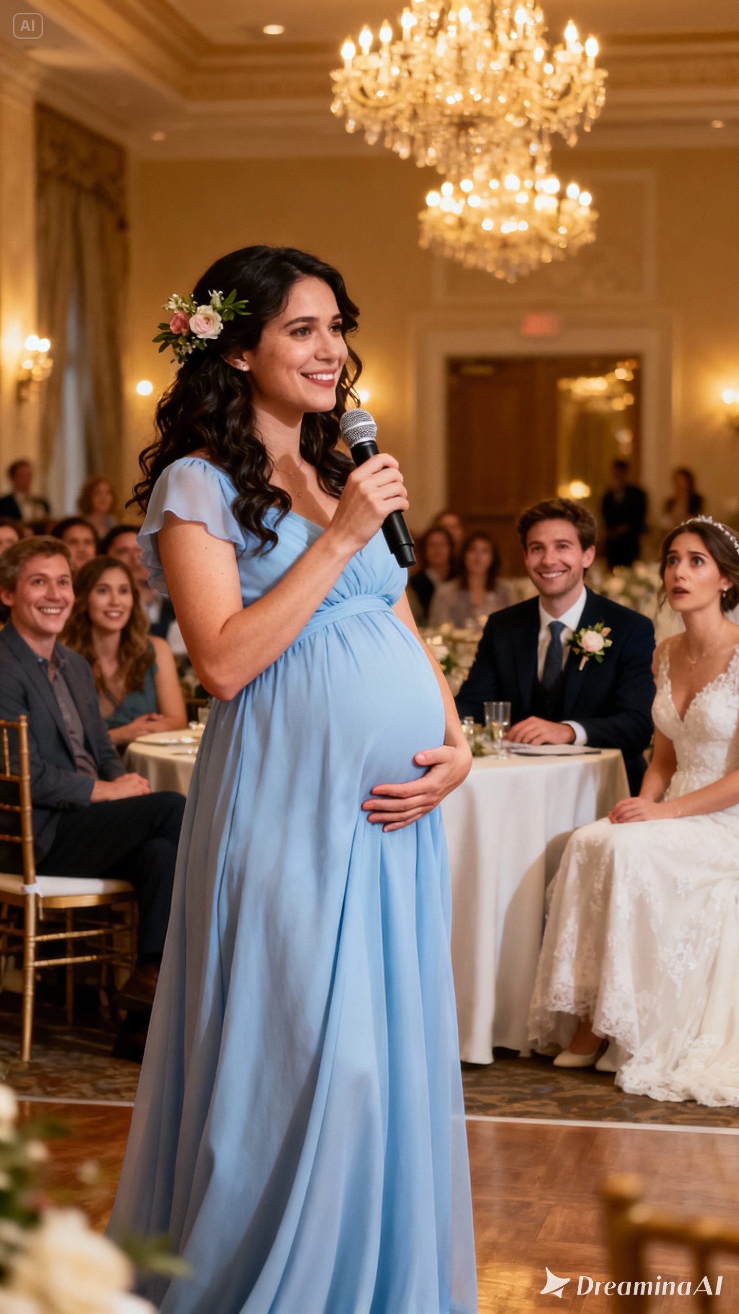 The most shocking part was that she arrived with a visible baby bump to congratulate us. Her presence caused a stir, and everyone stared, unsure what was coming next.