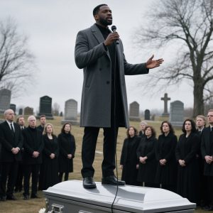 At a Funeral, a Man Suddenly Leaps Onto the Coffin, Turns On Music, and Dances — Everyone Is Outraged Until a Voice Comes Over the Speaker…