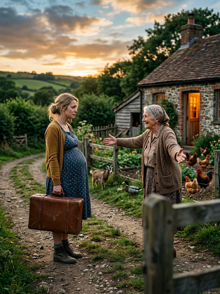 The dirt road leading to the farm was slick with mud, making each step a struggle. Her shoes sank, her back ached from carrying the suitcase, and the early contractions in her belly reminded her that time was pressing. Every step felt like wading through an ocean of doubt and exhaustion.