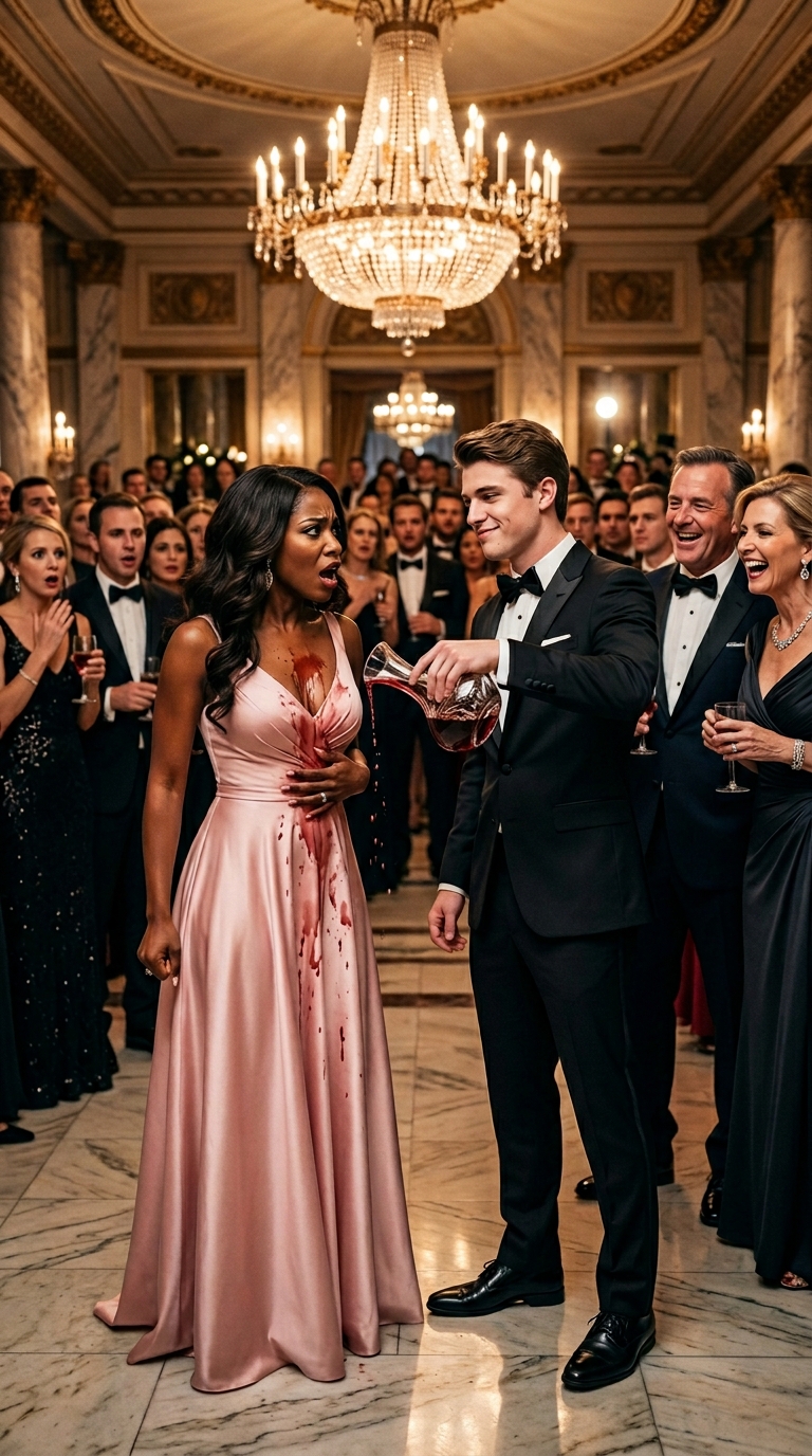 Dom Perignon dripped from her mother’s pearl earrings onto the marble floor of the Whitmore Foundation Gala. Four hundred guests. Three news cameras. A charity live stream watched by twelve thousand people… and climbing. Vanessa Whitmore clapped, as if her son had just scored a touchdown. Perfect, darling. Her phone lifted, recording. That’s how we handle gate crashers.