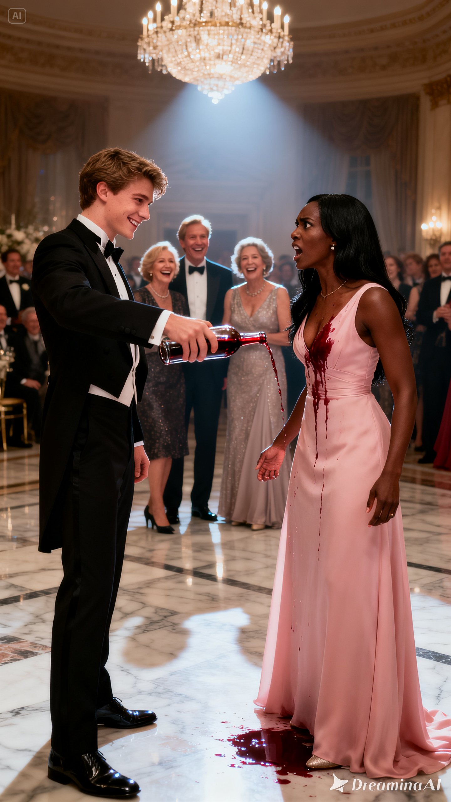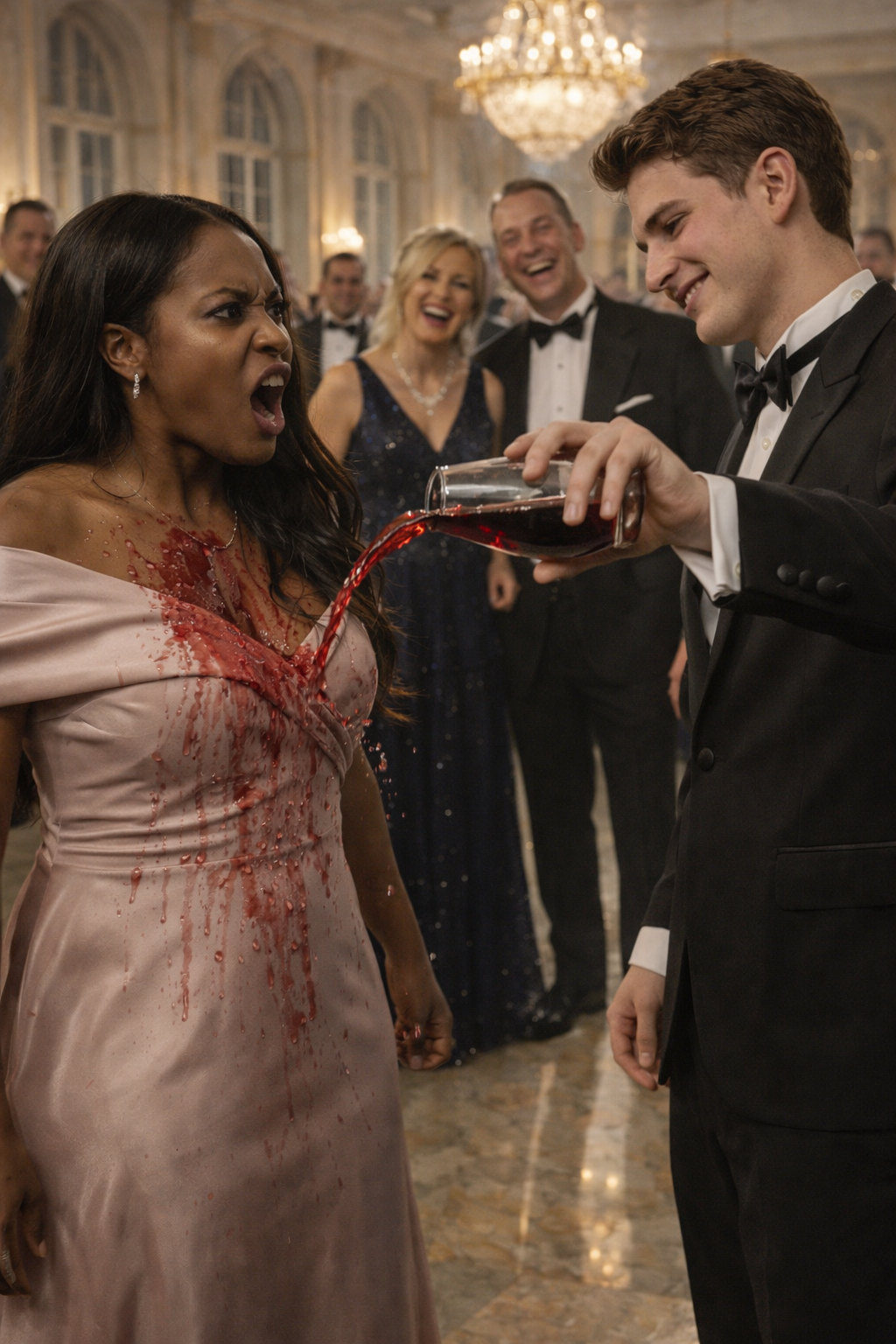 Garrett Forb is let out last. Still crying. Still asking for his parents. Still not understanding how champagne and cruelty could end his world. The ballroom slowly empties. Guests collect their things and leave in clusters. Already composing the stories they’ll tell. Already distancing themselves from the wreckage. already pretending they never laughed when the champagne poured down.