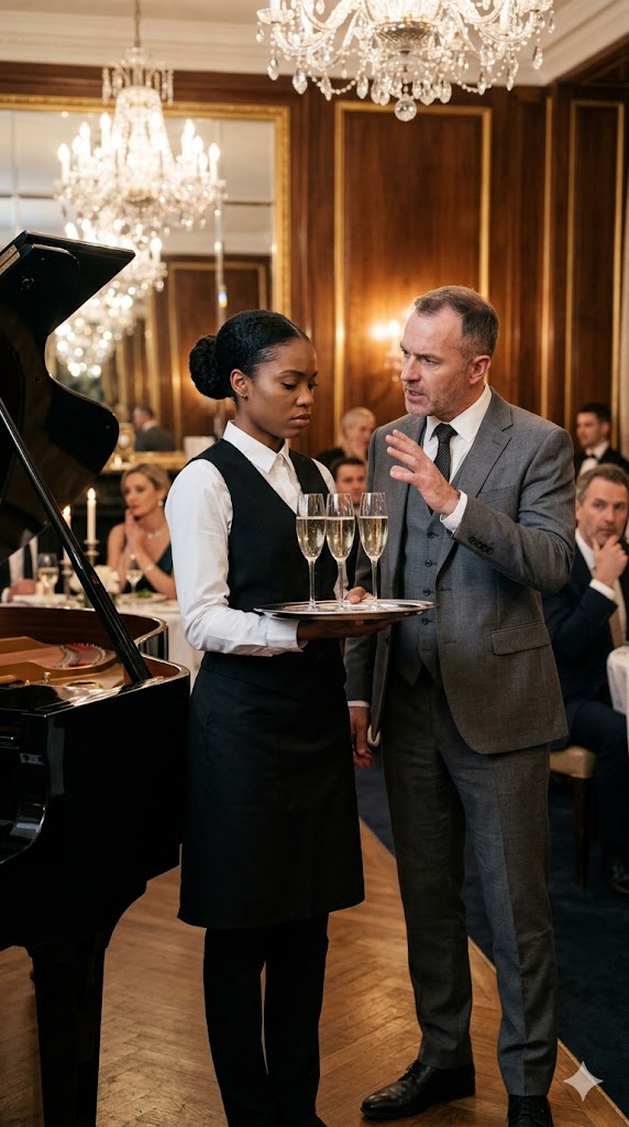 The night progressed as usual: laughter, silverware, soft jazz. Deborah moved with practiced grace, avoiding Leonard’s eyes, though a tension simmered beneath the surface. She had faced difficult customers before, but something about him was different. Not merely rude—calculated, predatory.