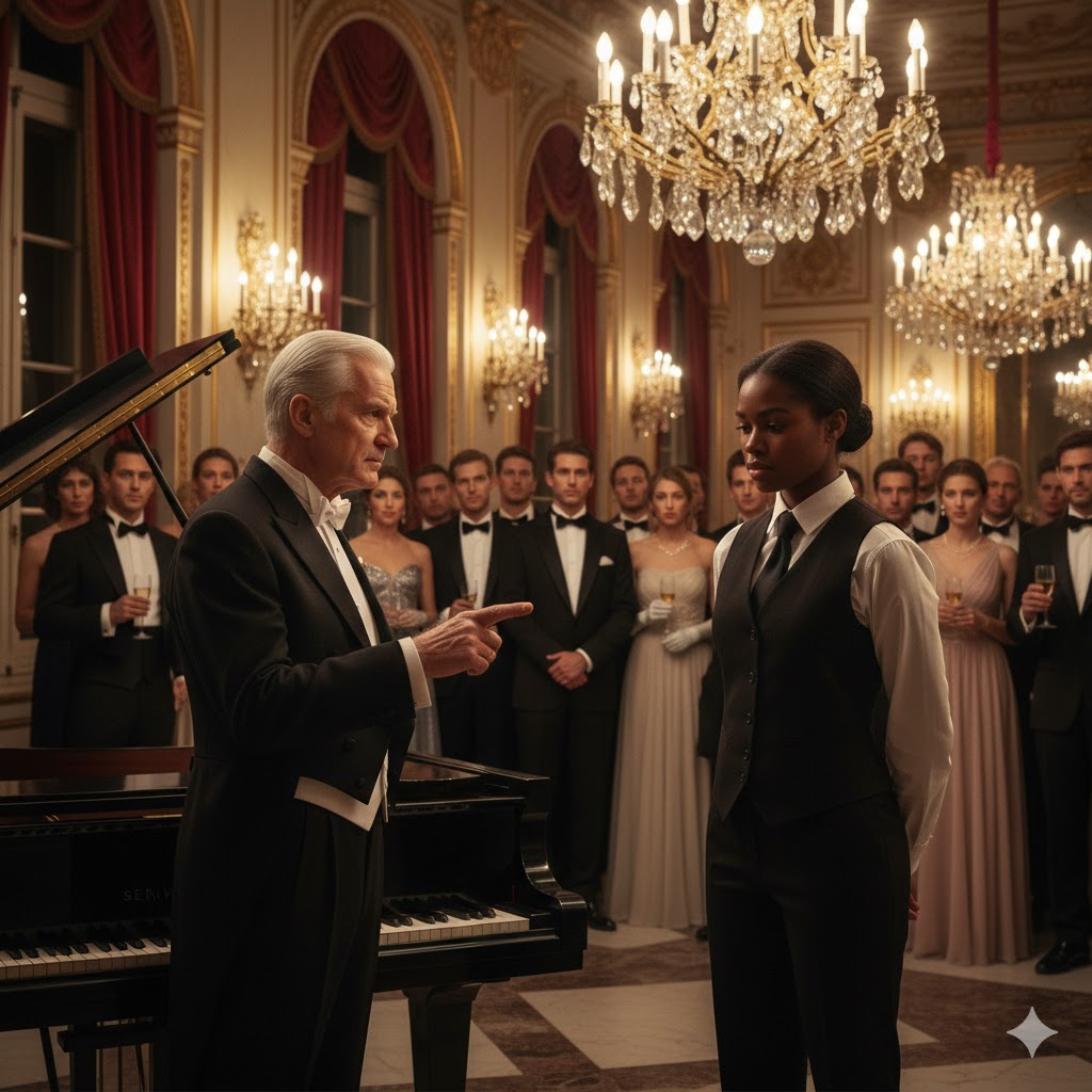 A heavy silence settled. Deborah glanced at the piano, then back at Leonard. His smug expression dared her to break—or prove him wrong.
