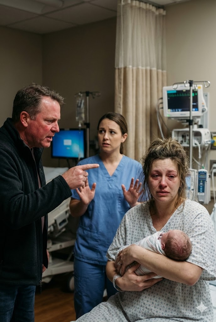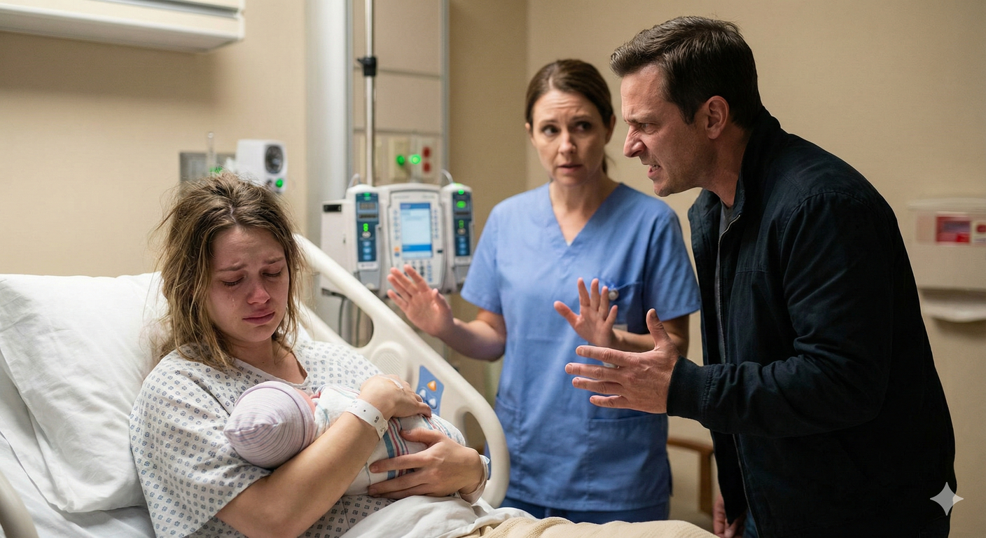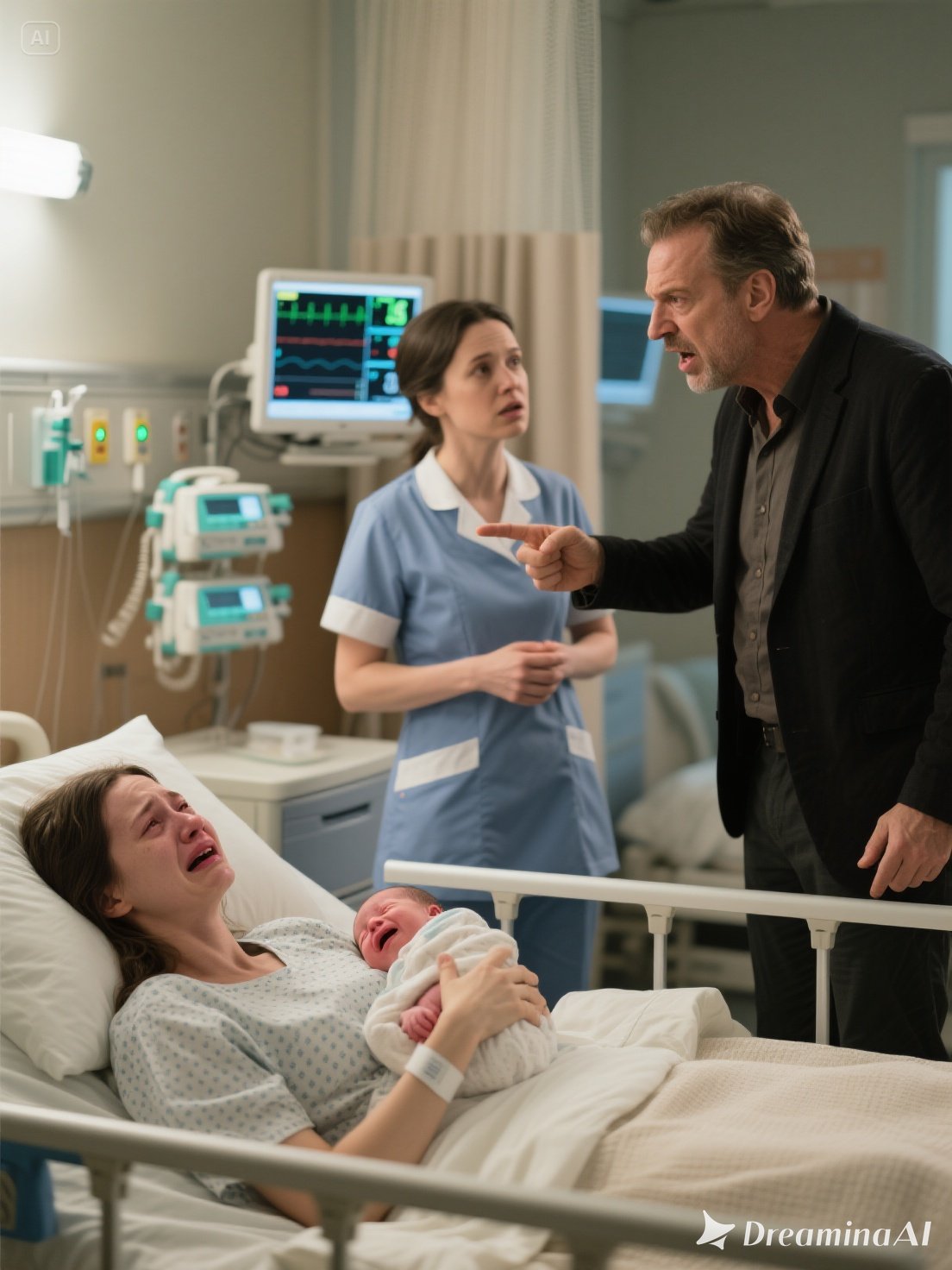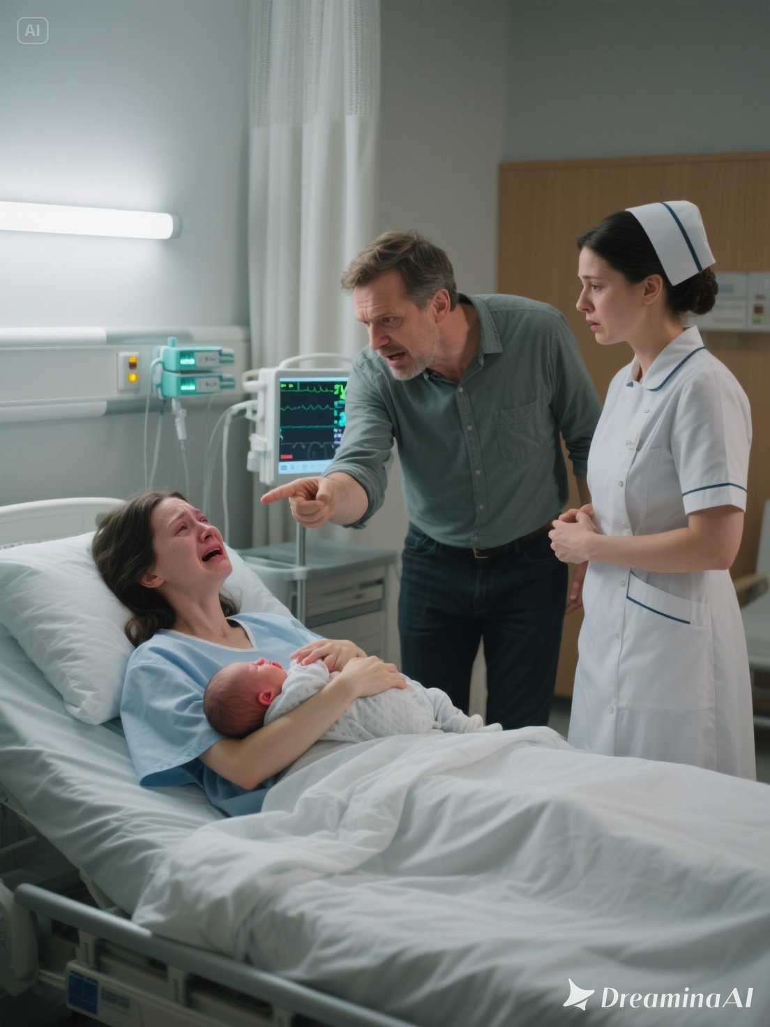 Her husband, Adrian Lewis, thirty-three, broad-shouldered and imposing, stood at the end of the bed. Instead of tenderness, irritation burned in his eyes. His fists tightened.