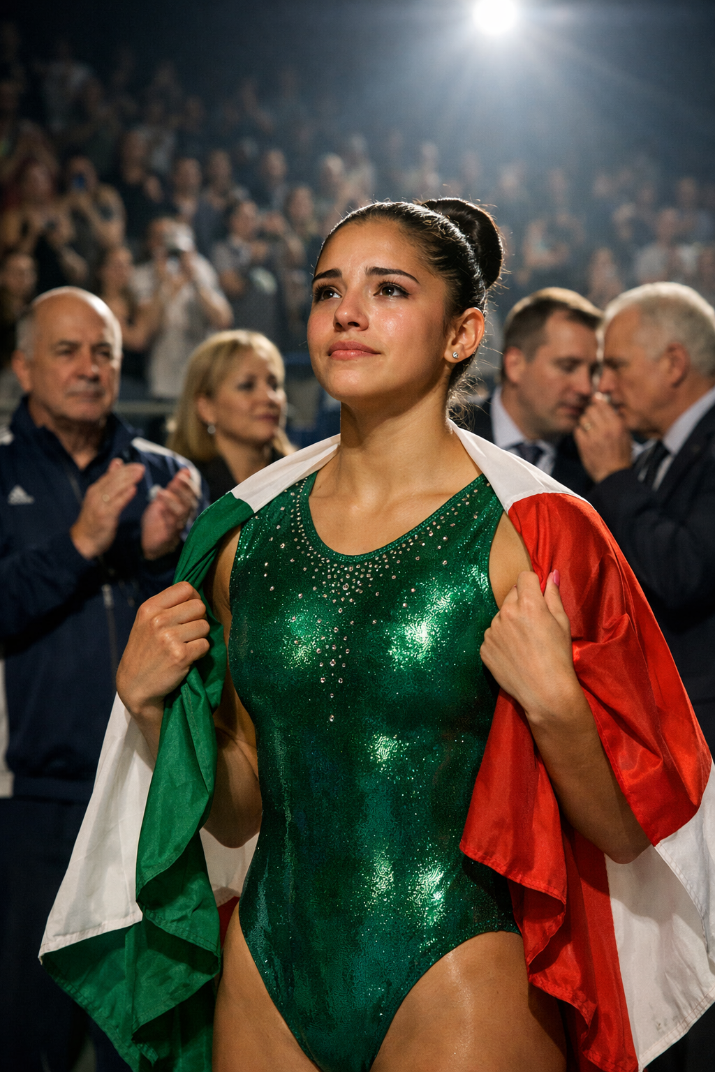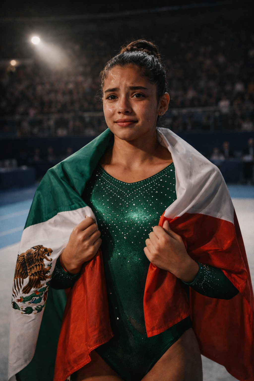 The long-awaited day of the World Championships arrived like a perfect storm. The massive European stadium was packed with 15,000 spectators, with millions more watching live worldwide. Alejandra wore a stunning green, white, and red leotard with undeniable pride. In the front rows, thanks to flights funded by donations from moved supporters in Mexico, her parents sat weeping in disbelief at seeing their daughter from a small town standing on the world’s biggest stage.