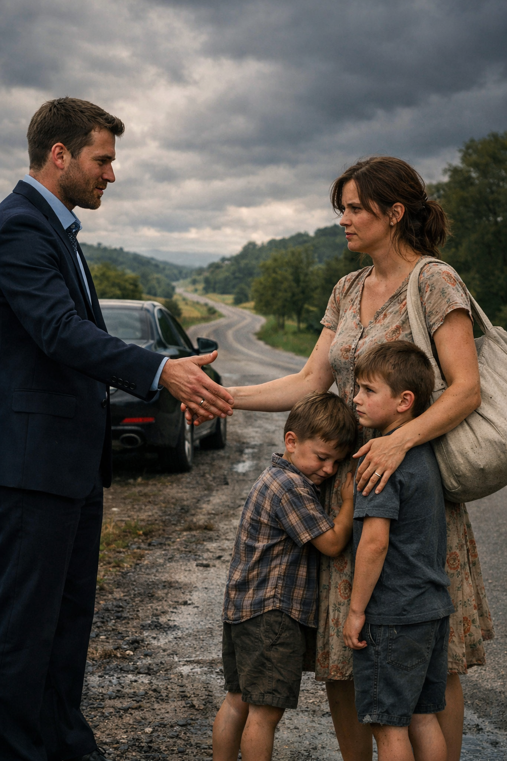 Her silence—and the way she pressed her lower lip until it nearly bled—was the loudest answer he could have received. Alberto had to brace himself against the warm hood of the car. He had two sons. Two little boys shivering by the roadside, unaware of who he was, unaware even of their own story.
