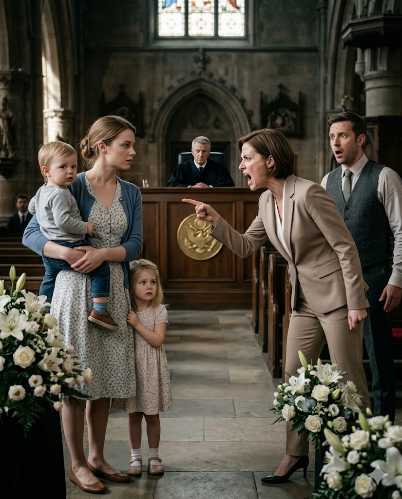 Maria stepped inside calmly… with two identical children holding her hands.