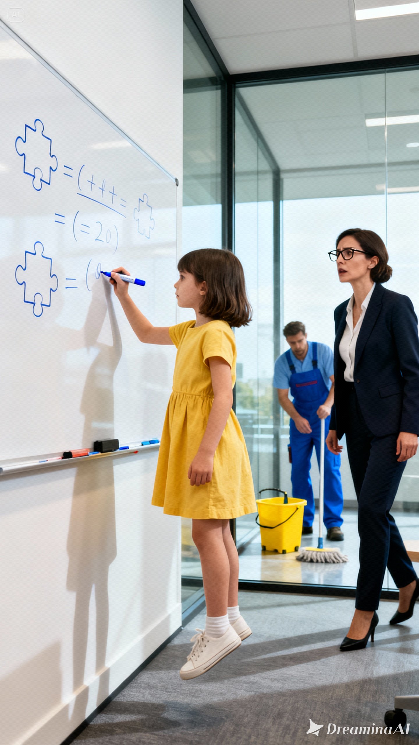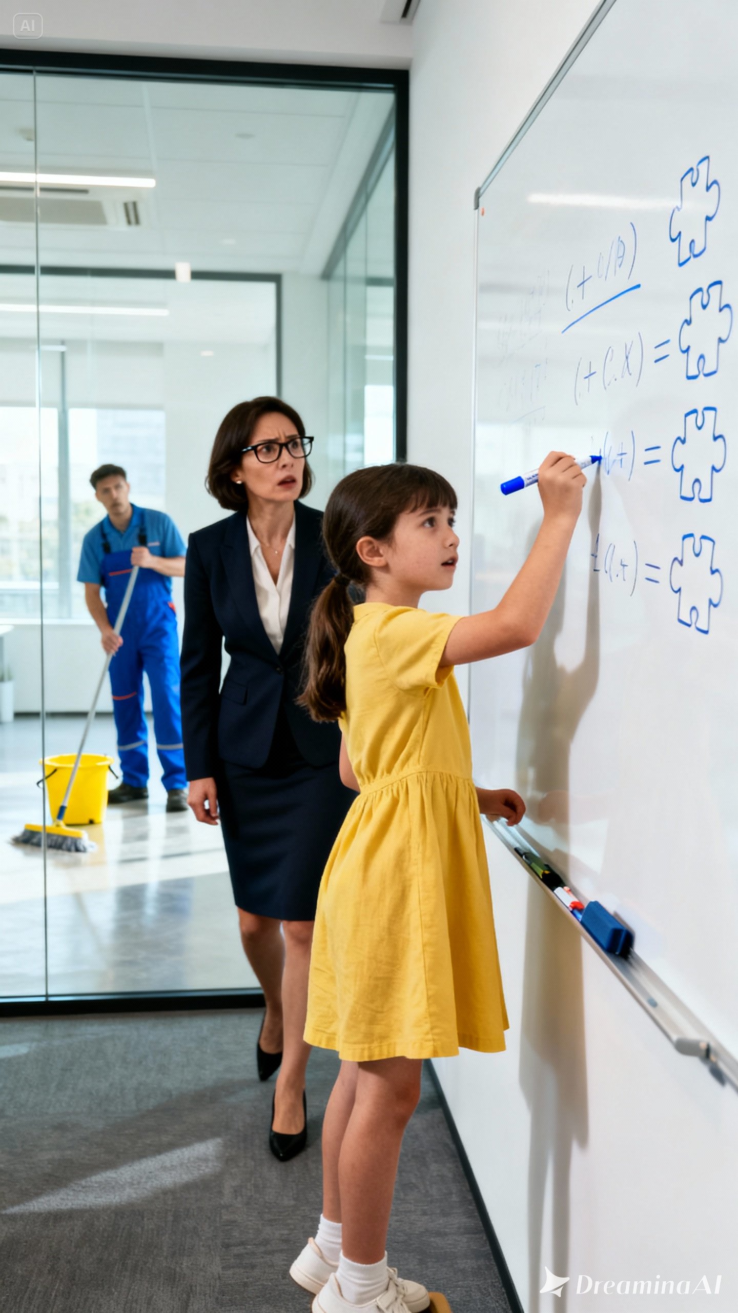Two broad-shouldered guards rushed in, led by Harris, the head of security—a man who relished authority. His eyes swept the scene: the powerful CEO, the terrified janitor, the small girl marking the wall.