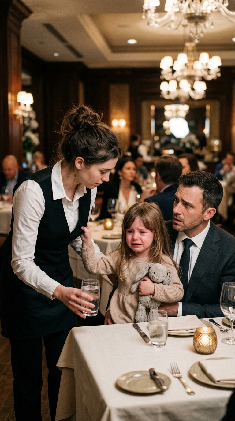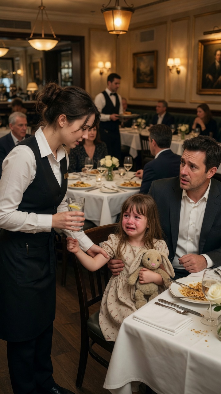 Evelyn felt every gaze in the room press against her skin as Sophie clung to her leg, shaking so violently her small body made the fabric of Evelyn’s apron tremble. The child’s sobs were wet, fractured, desperate—nothing like the unsettling silence she had held just moments earlier.