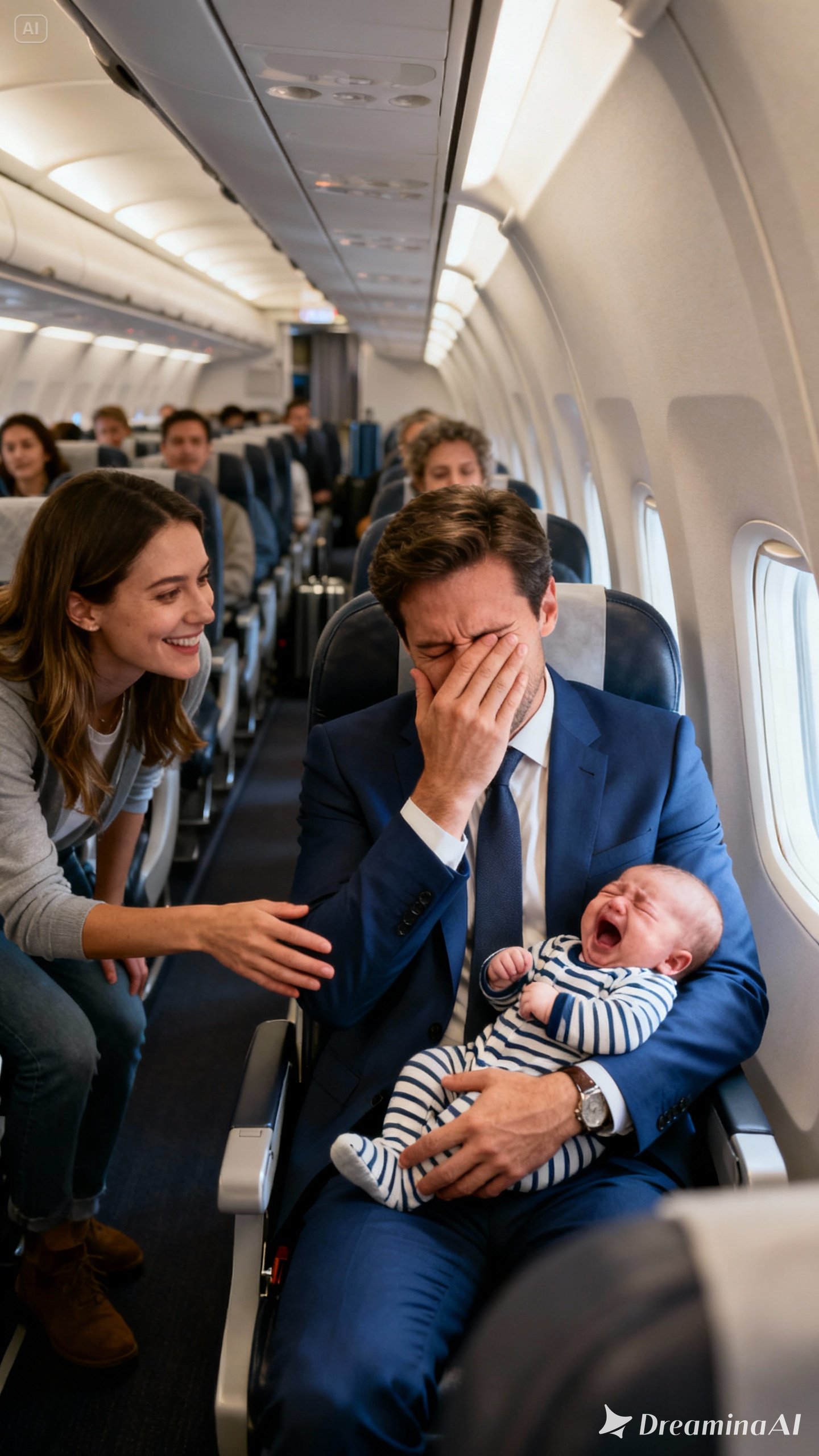 The crying grew louder. The flight attendants, overwhelmed, exchanged helpless glances. The tension in the cabin thickened. Alejandro, on the edge of breaking, sank back into his seat, closed his eyes, and wished he could simply vanish.