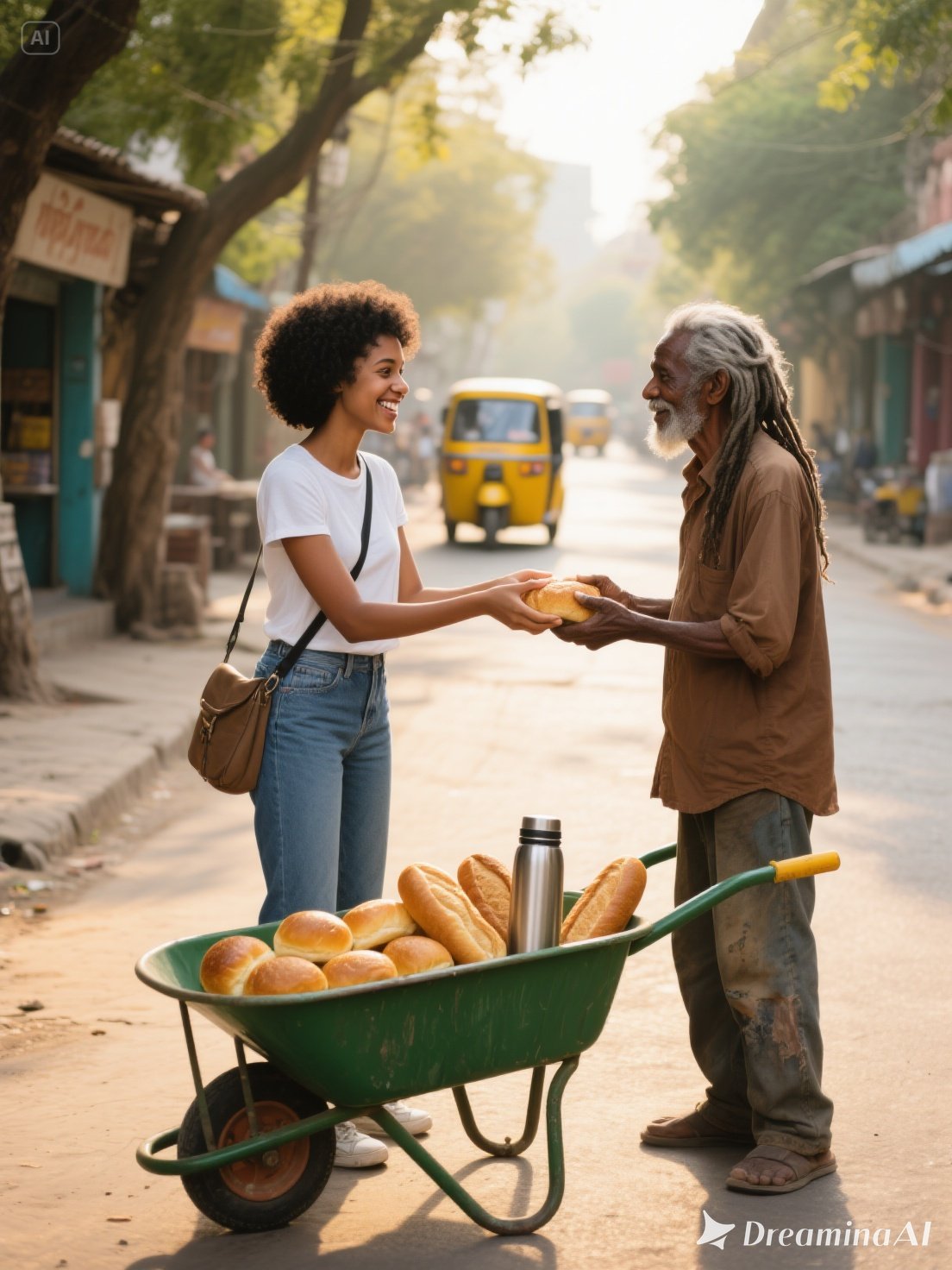 Grace stopped. Something in his eyes—dignity beneath hardship—pulled her forward. She placed akara, bread, and tea before him.
