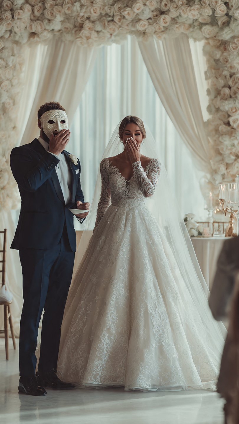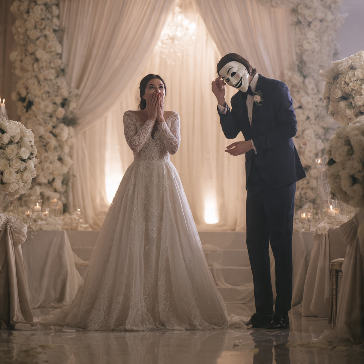 Ella stood in a white gown far too extravagant for her humble dreams, her heart heavy—not with joy, but with fear.