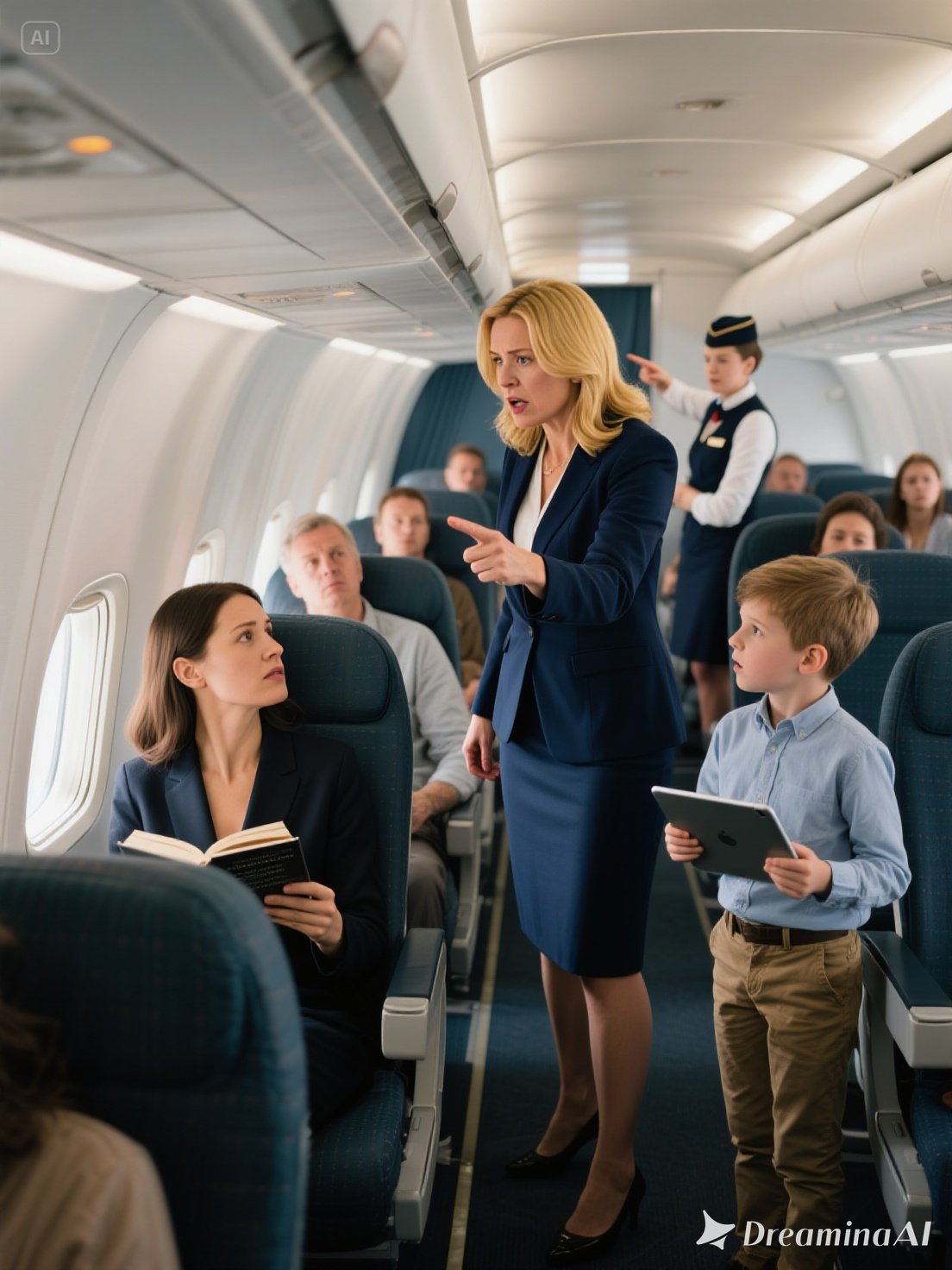 Her voice rose, slicing through the hum of the cabin.