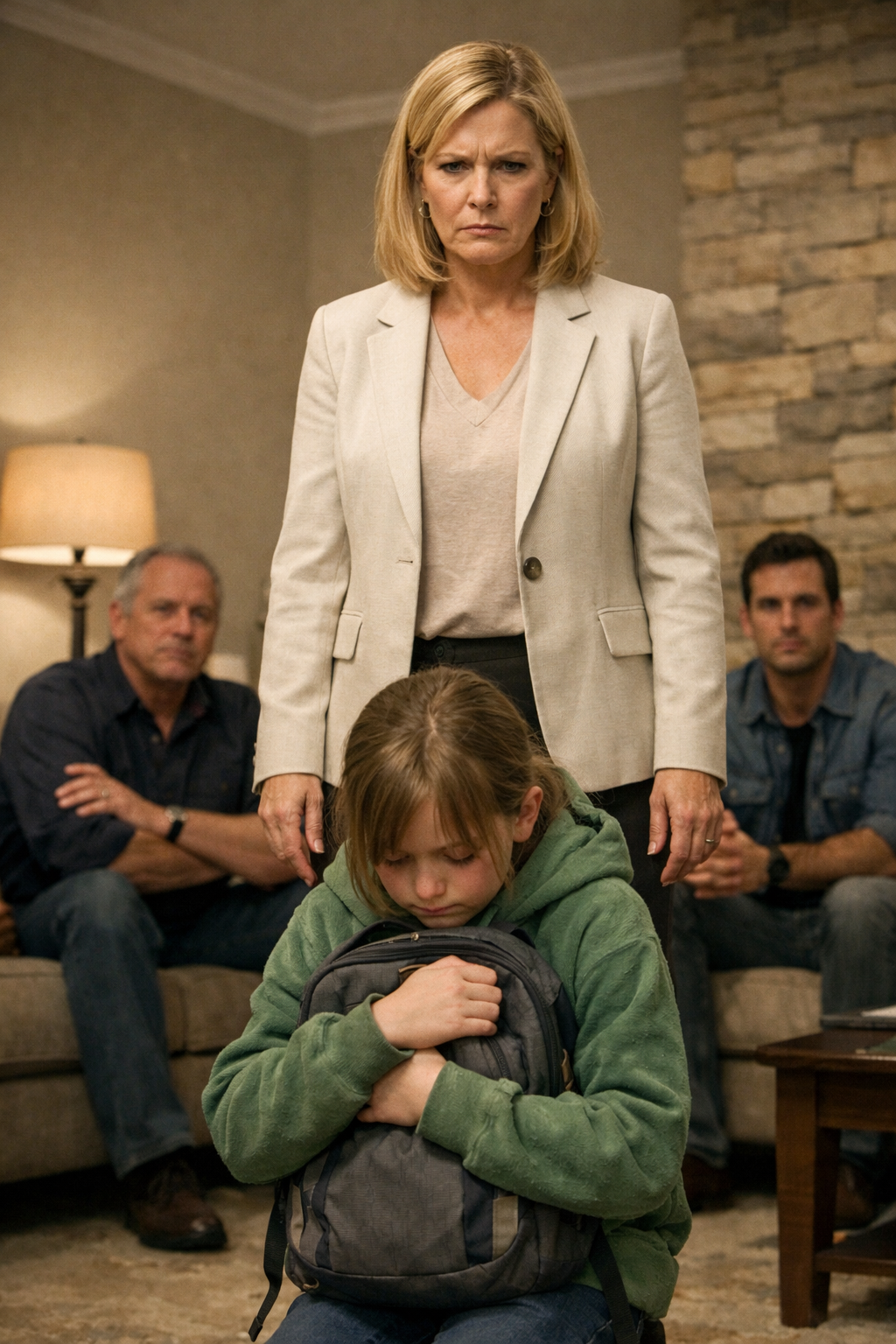 The stepmother forced a tight, brittle laugh. “Mind your own business,” she snapped, brushing invisible lint from her sleeve.