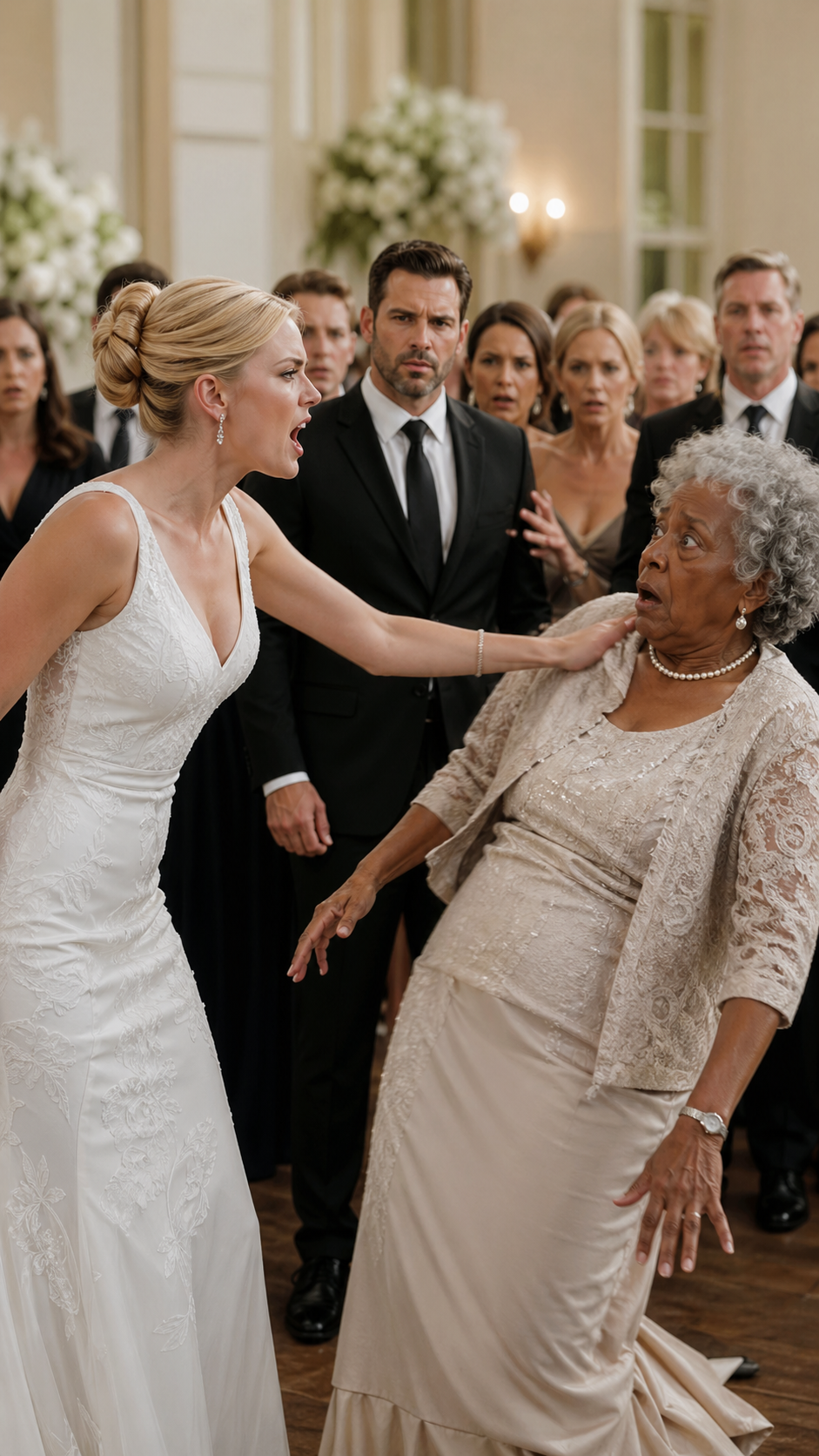 Around us, the guests drew inward and backward at the same time. Tuxedos. Diamonds. Silk. Formal pity. Nobody intervened. Nobody asked who I was. They simply accepted the hierarchy she had assigned because it matched the one they preferred.