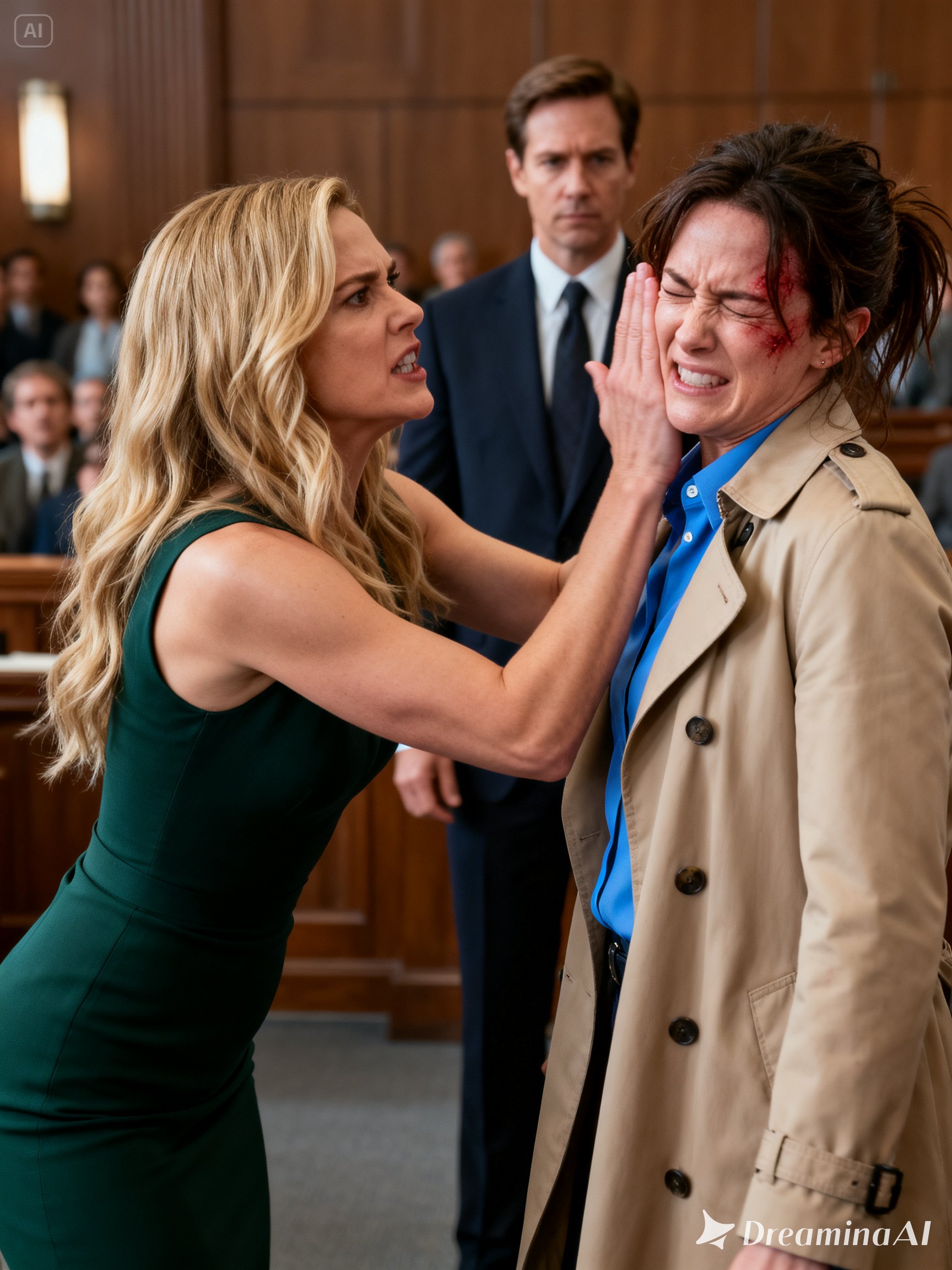 The courtroom clerk rose first, clearly trying to regain control before panic unraveled everything. “This proceeding is now in session,” she announced, her voice carrying across the room. “All parties will remain seated until instructed otherwise.”
