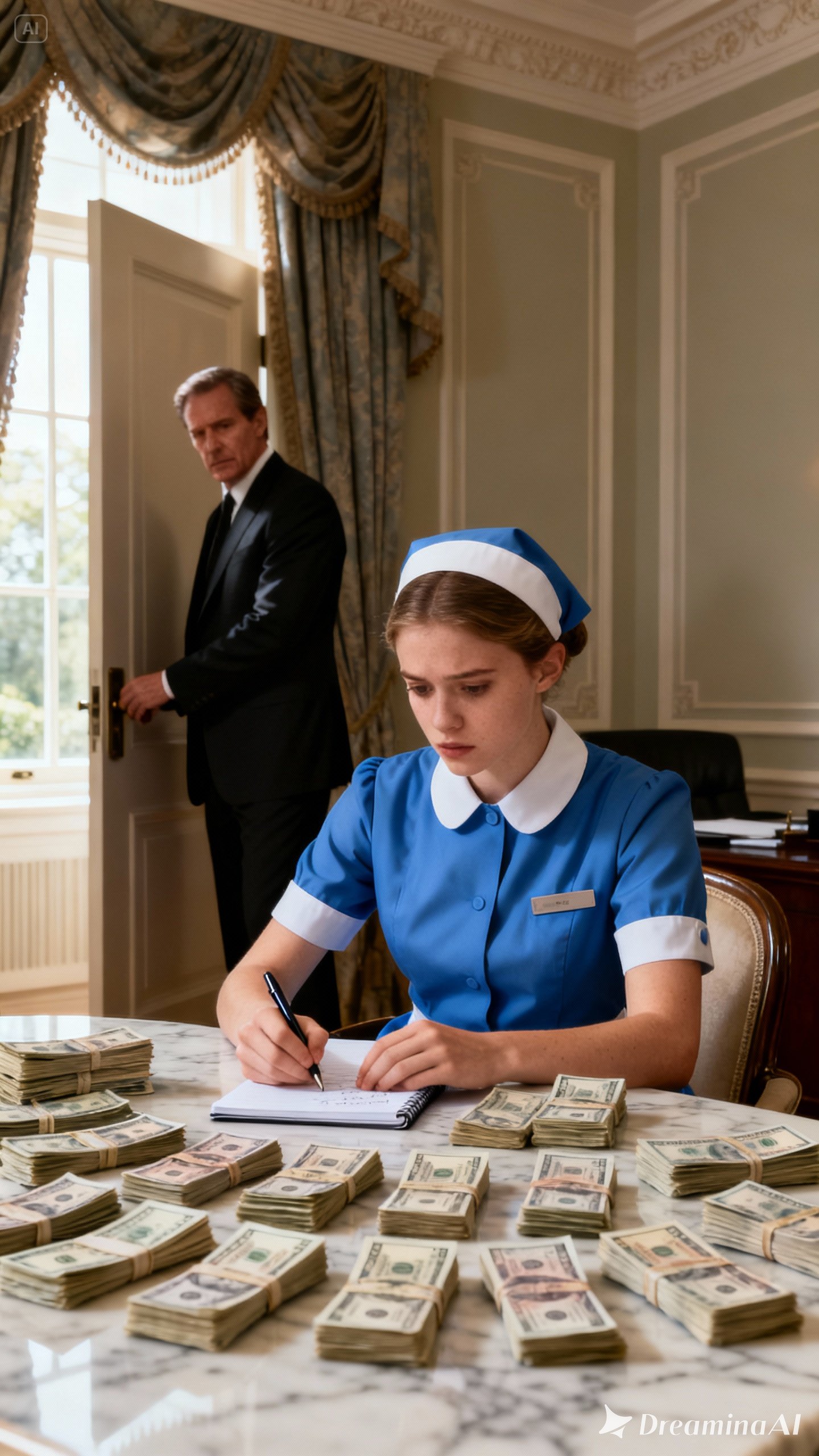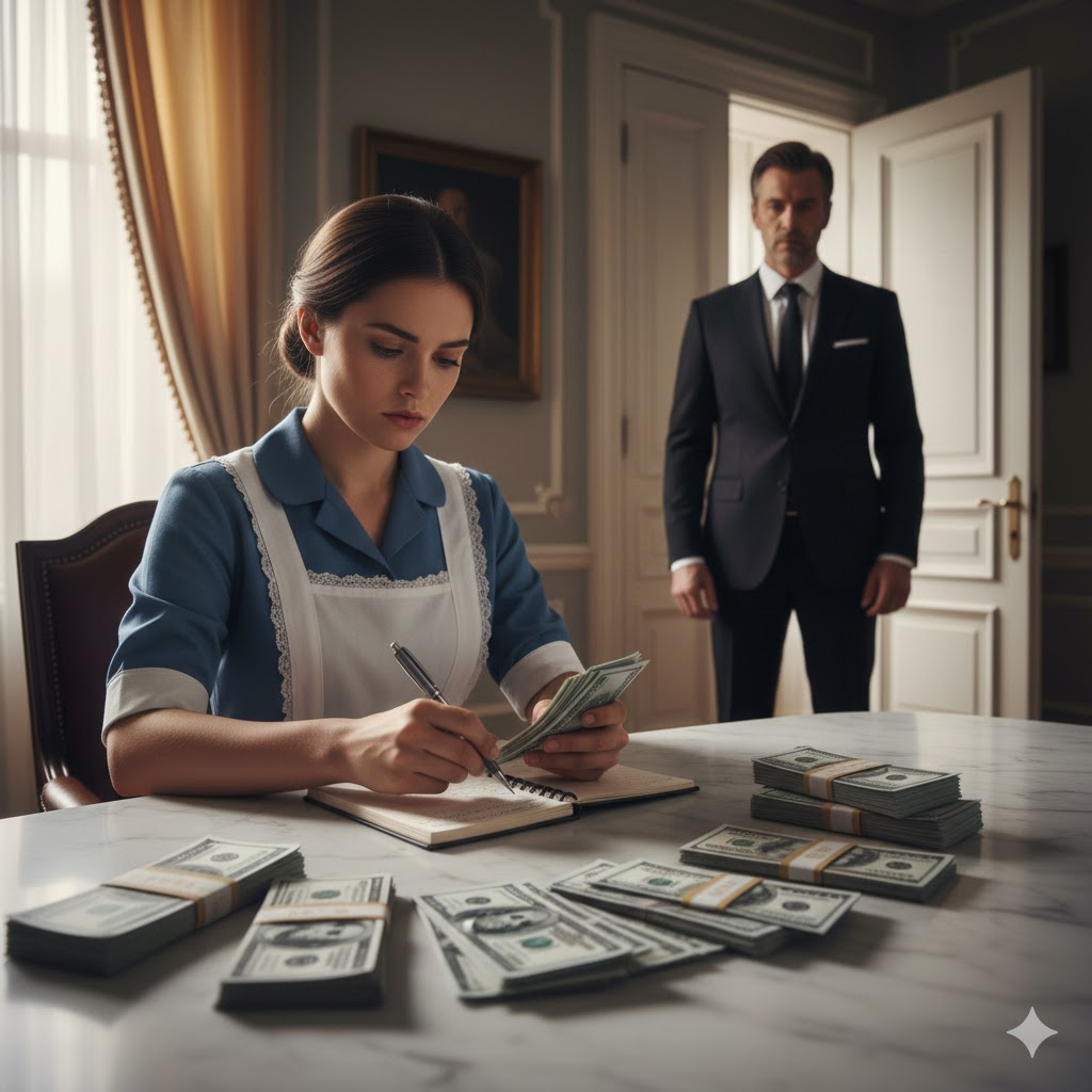She stepped inside without surveying the place, without curiosity or awe. He explained the routine quickly: cleaning schedule, discretion, expectations. Then he led her upstairs.