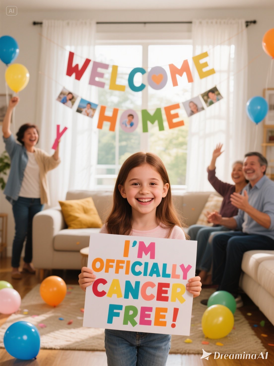 Yesterday, she called crying with joy. “Charlotte’s in remission!” she said. I cried too. She even sent me a photo—Charlotte smiling, holding a sign: “I’m officially cancer free!”