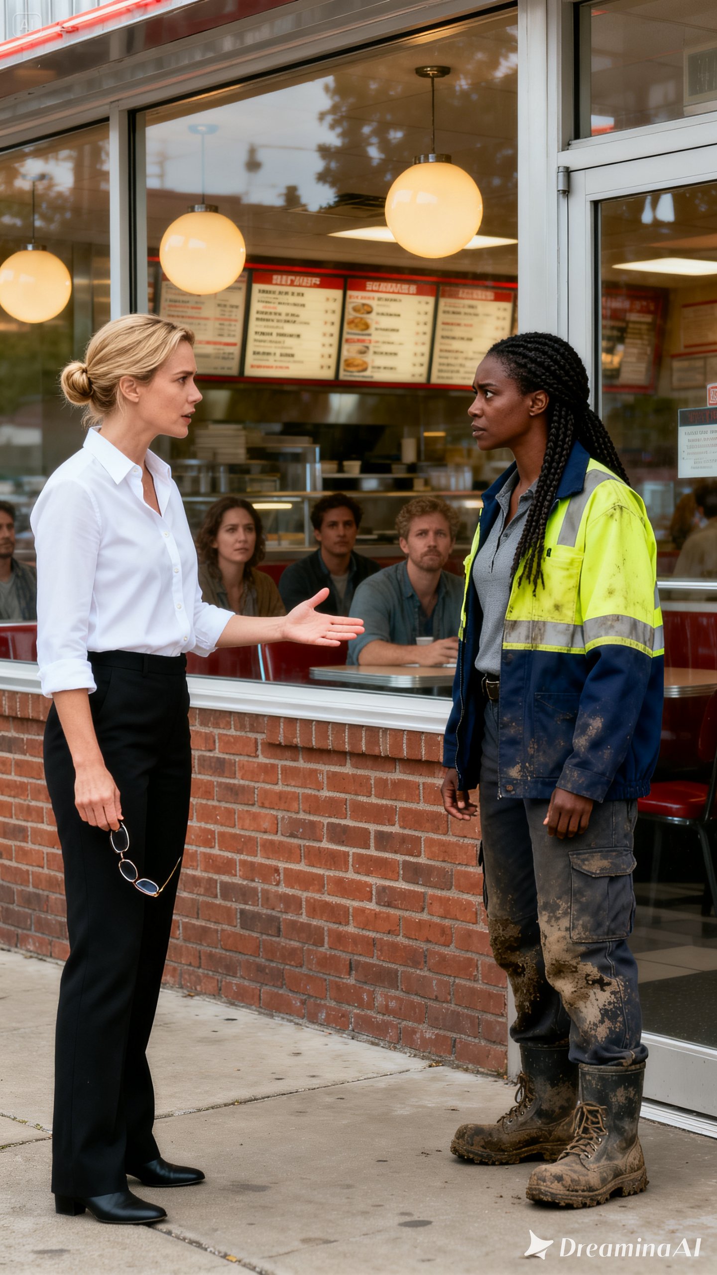“No,” she said bluntly. “We don’t serve people who walk in looking like they just came off a construction site.”
