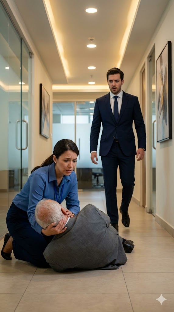 Her heels rang against the marble as she forced her way through the crowd. She dropped to her knees beside him, hands shaking as she steadied his arm.