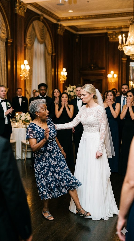 Her cane tapped against marble—soft at first, then louder, deliberate, like a judge’s gavel calling court to order.
