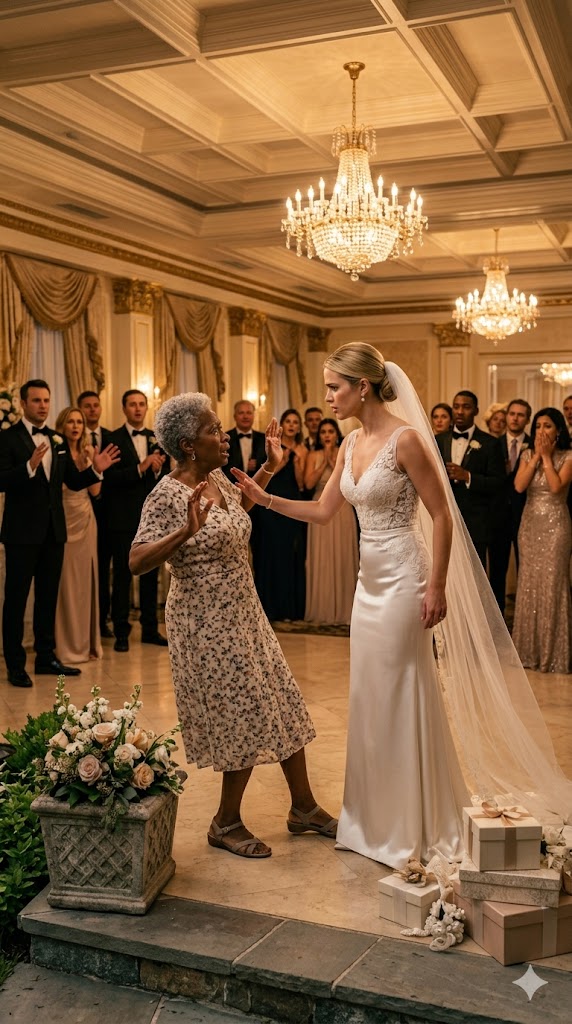 Near the altar, draped in ivory silk and cascading peonies, stood Lena—the radiant bride in a $30,000 Vera Wang gown—laughing with two bridesmaids in blush-pink chiffon. Their voices carried in the hushed pre-ceremony stillness, sharp and careless.