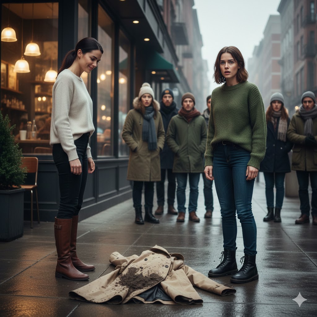 Before I could answer, she stepped back, smiling cruelly. “You know what? I think that coat needs a little… cleaning.”