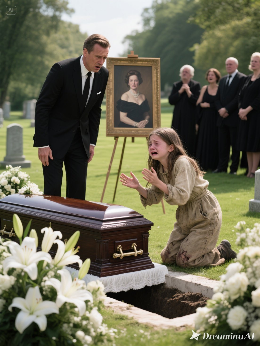 When wealth surrounds grief, it doesn’t smell like rain or soil. It smells of rare lilies, polished marble, and expensive cologne trying to mask fear.