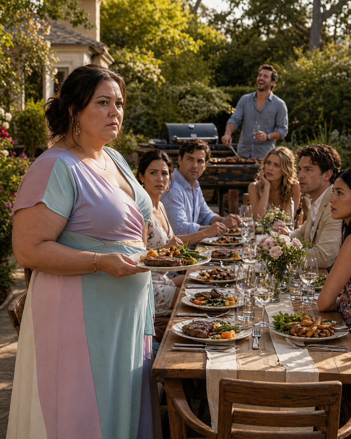 That night, on the hot terrace, I brought out the last dish—roasted vegetables—and sat beside my husband. Ricardo was pouring wine. His wife, Laura, absentmindedly swirled her glass. She always went silent when he started.