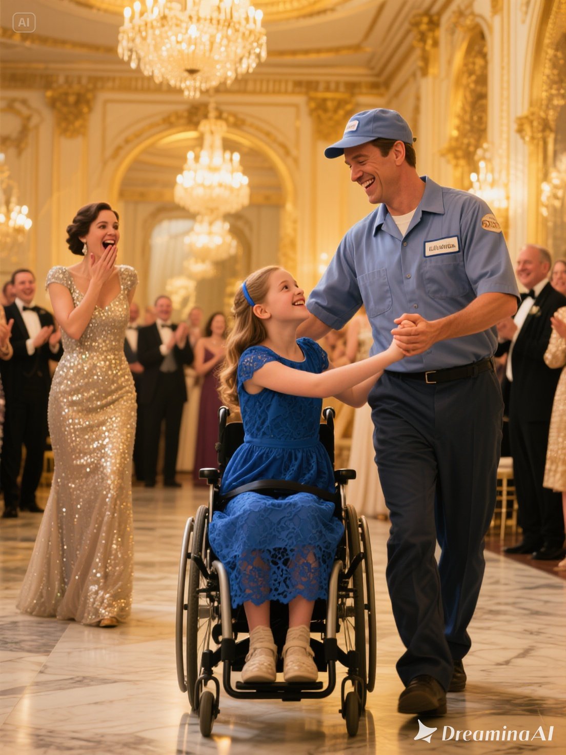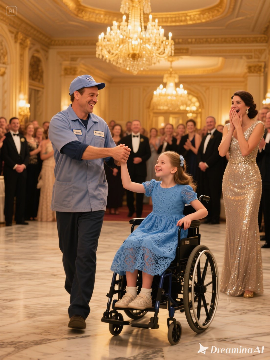 He hesitated, glancing down at his stained uniform, the mop in his hand, and his son asleep on the bleachers. But then, slowly, he set the mop aside. He walked over, took her hand, and gently rolled her chair to the center of the floor.